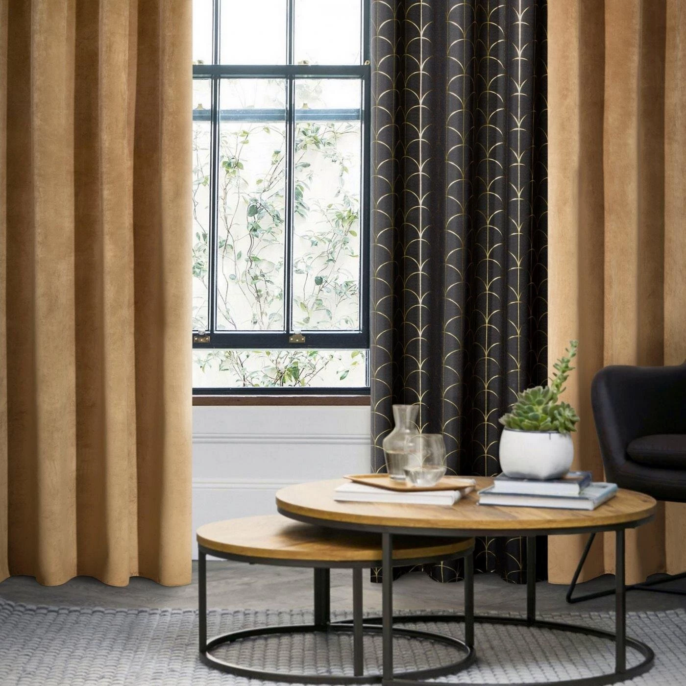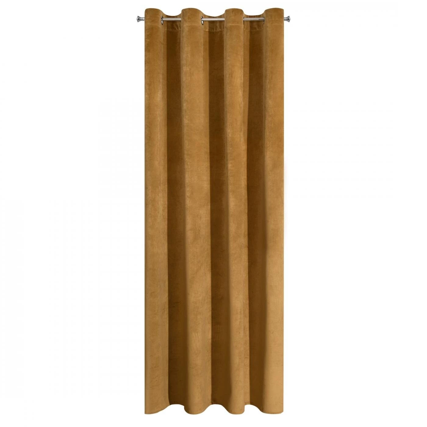 - Zasłona welwetowa jednokolorowa szerokość: 140 cm, długość: 250 cm, kolor: miodowy, Gramatura: 290 GSM, Skład: 100% poliester