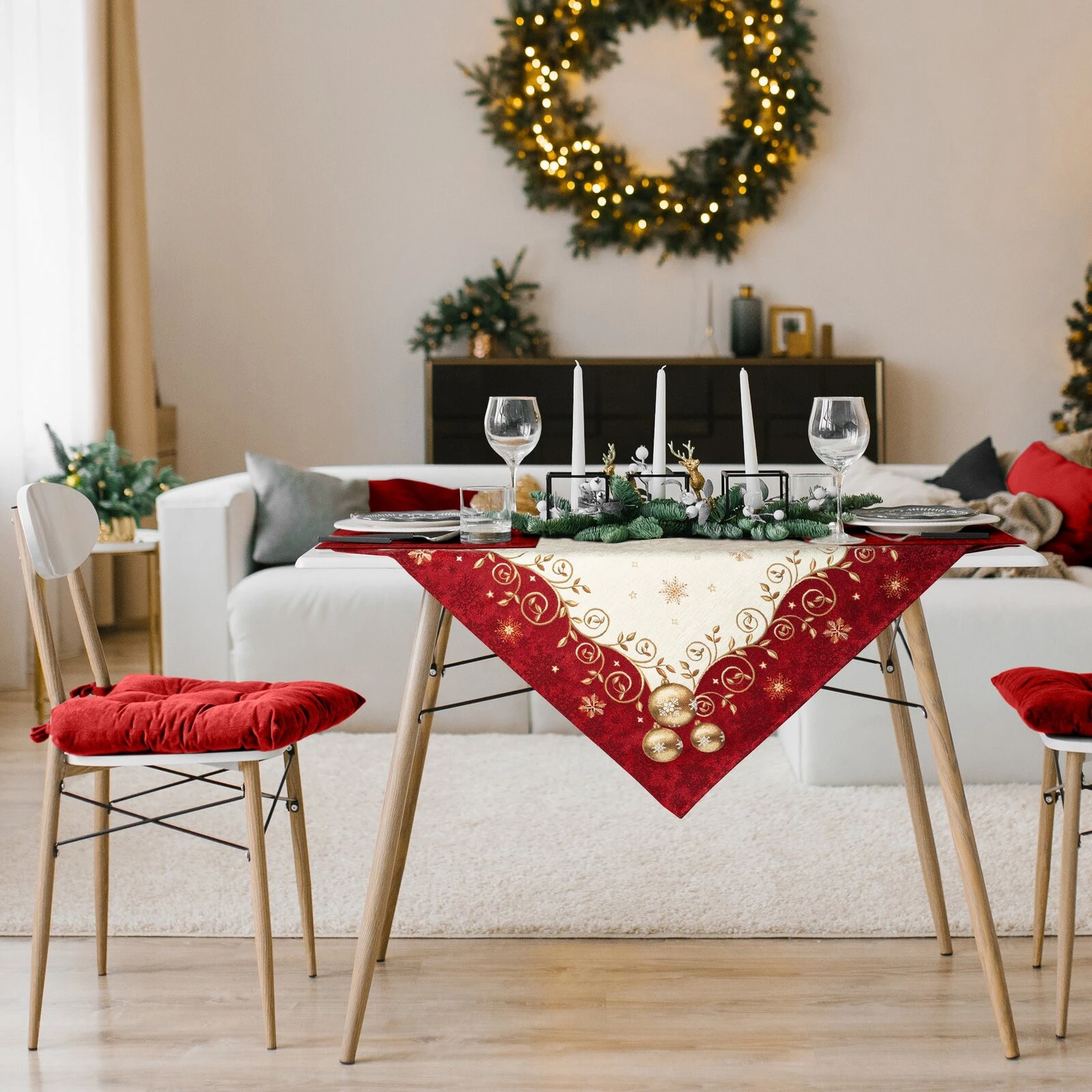 - Obrus z gobeliny szenilowej ze świątecznym wzorem szerokość: 100 cm, długość: 100 cm, kolor: beżowy, Gramatura: 450 GSM, Skład: 43% poliester, 40% akryl, 17% bawełna