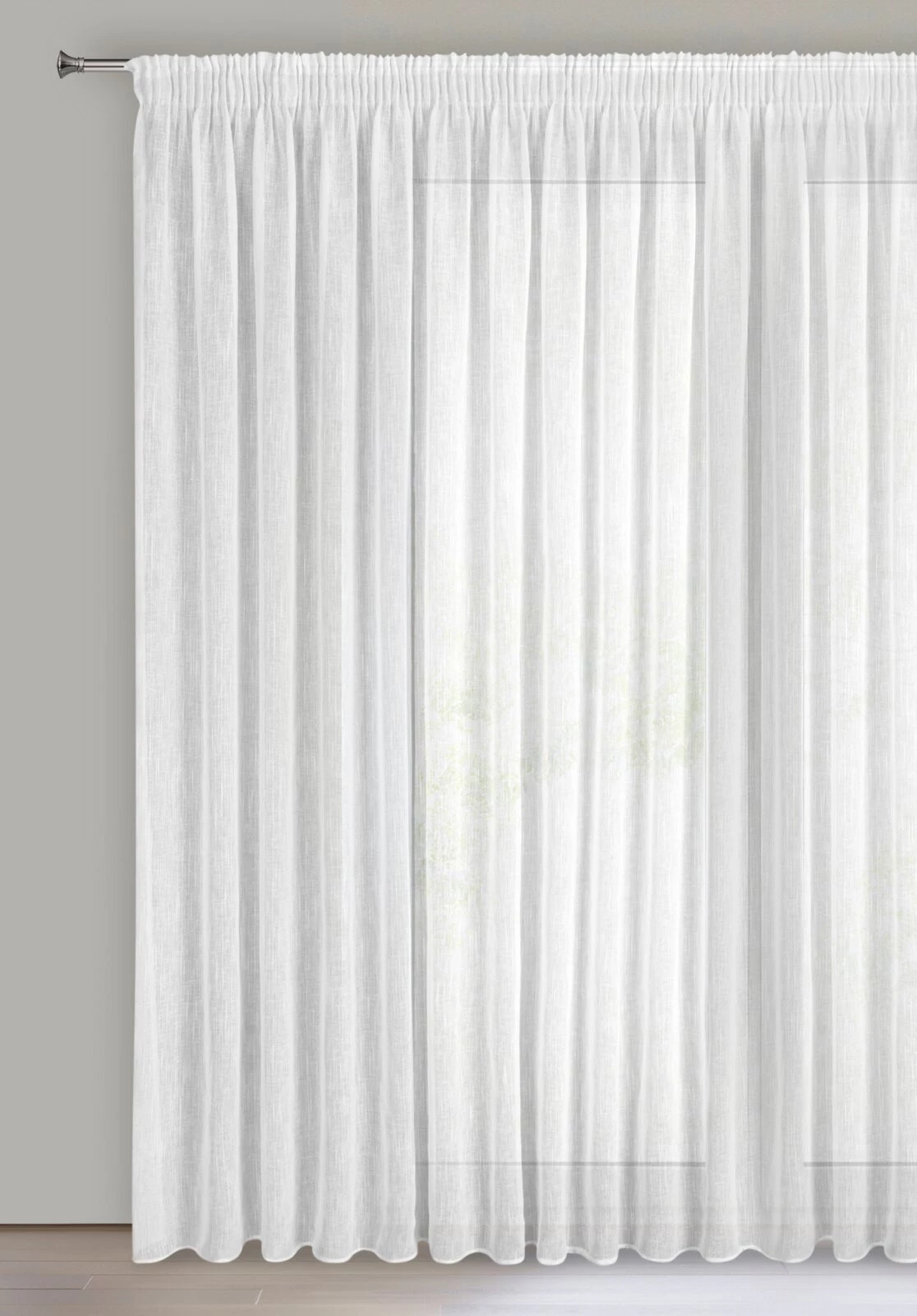 - Firana gotowa o strukturze deszczyku szerokość: 300 cm, długość: 270 cm, kolor: biały, Gramatura: 130 GSM, Skład: 100% poliester