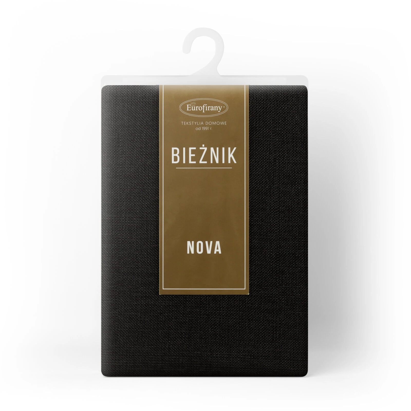 Bieżnik zdobiony kantą szerokość: 40 cm, długość: 140 cm, kolor: czarny, Gramatura: 255 GSM, Skład: 100% poliester
