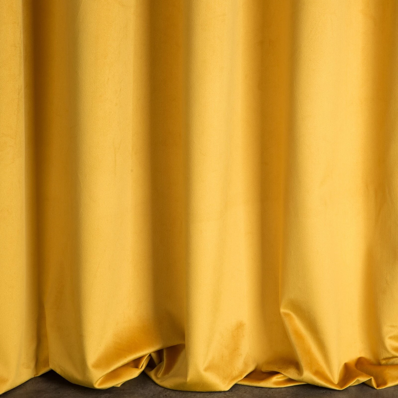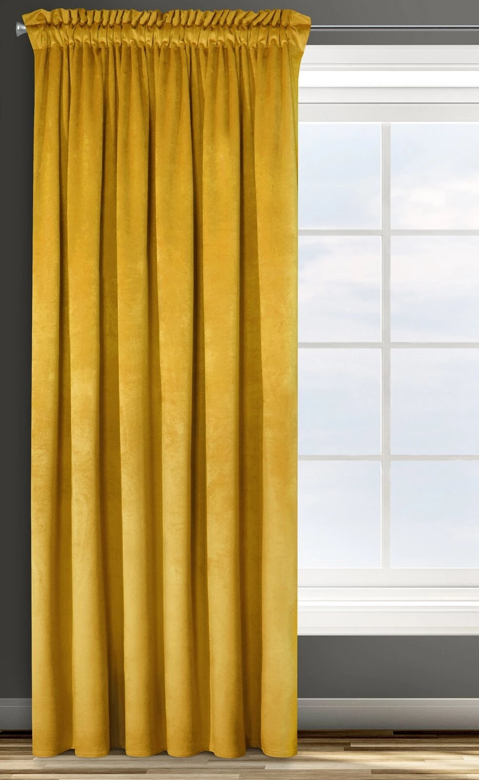 Zasłona welwetowa jednokolorowa szerokość: 135 cm, długość: 300 cm, kolor: musztardowy, Gramatura: 200 GSM, Skład: 100% poliester