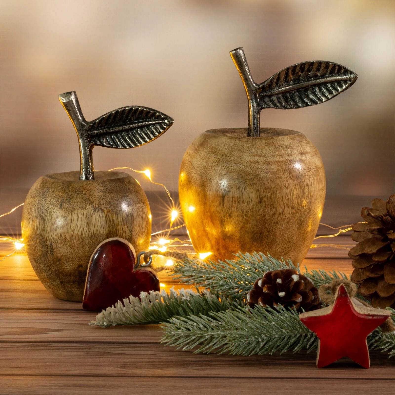 świąteczna figurka dekoracyjna szerokość: fi 9 cm, długość: 17 cm, kolor: brązowy, Skład: 90% drewno, 10% aluminium