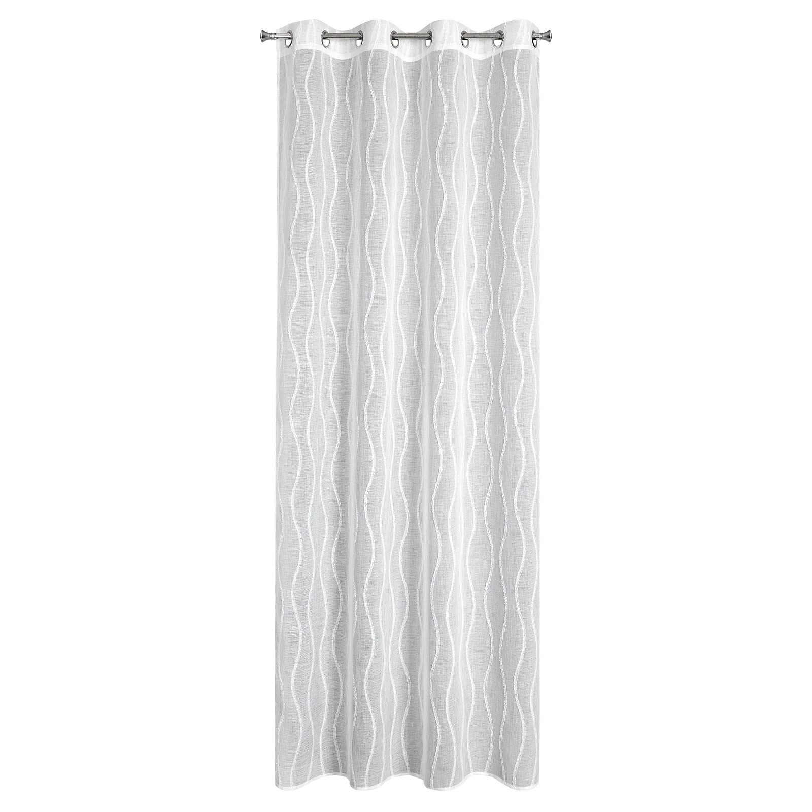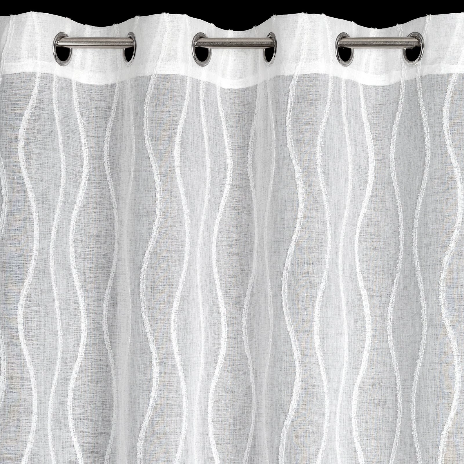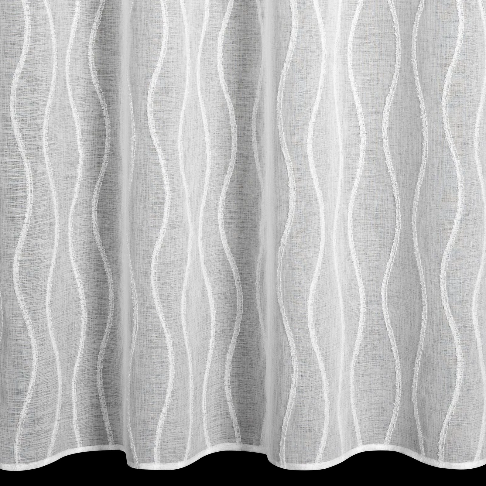 - Firana gotowa zdobiona geometryczną aplikacją szerokość: 140 cm, długość: 250 cm, kolor: biały, Gramatura: 75 GSM, Skład: 100% poliester