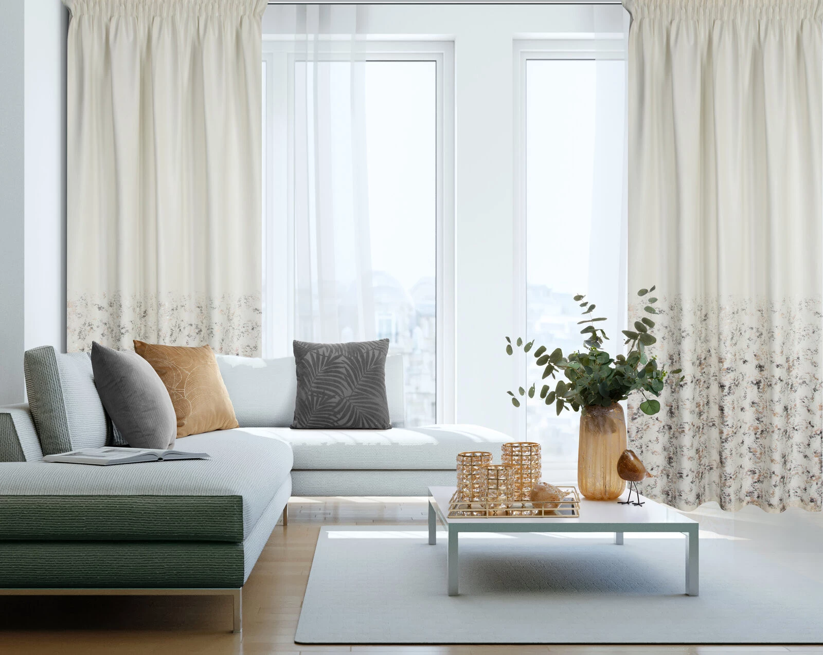 - Zasłona welwetowa z metalicznym nadrukiem od dołu szerokość: 140 cm, długość: 270 cm, kolor: kremowy, Gramatura: 200 GSM, Skład: 100% poliester