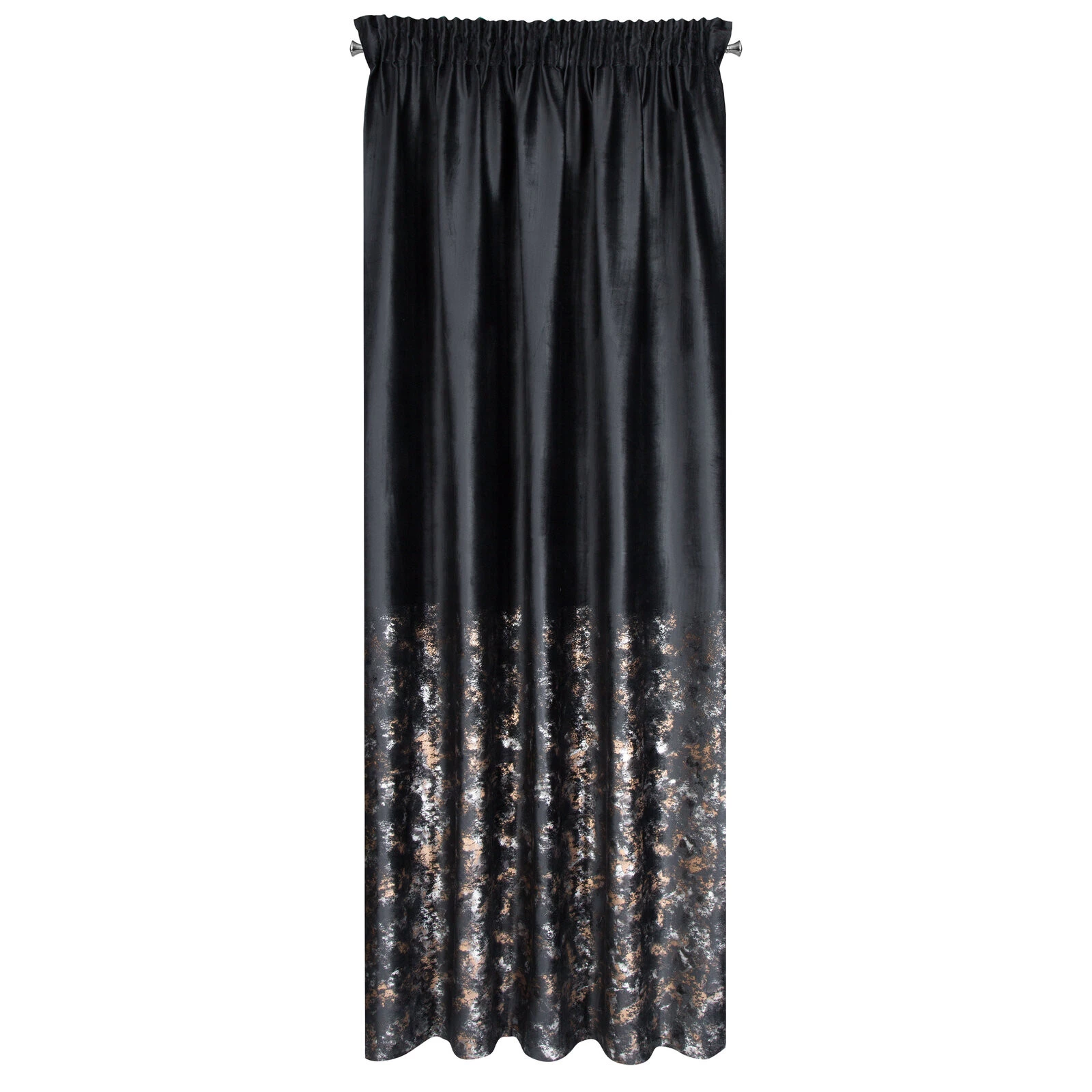 Zasłona welwetowa z metalicznym nadrukiem od dołu szerokość: 140 cm, długość: 270 cm, kolor: czarny, Gramatura: 200 GSM, Skład: 100% poliester