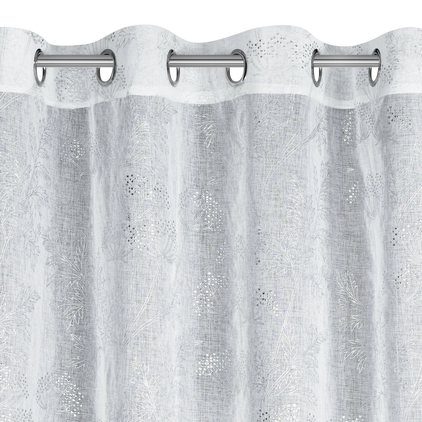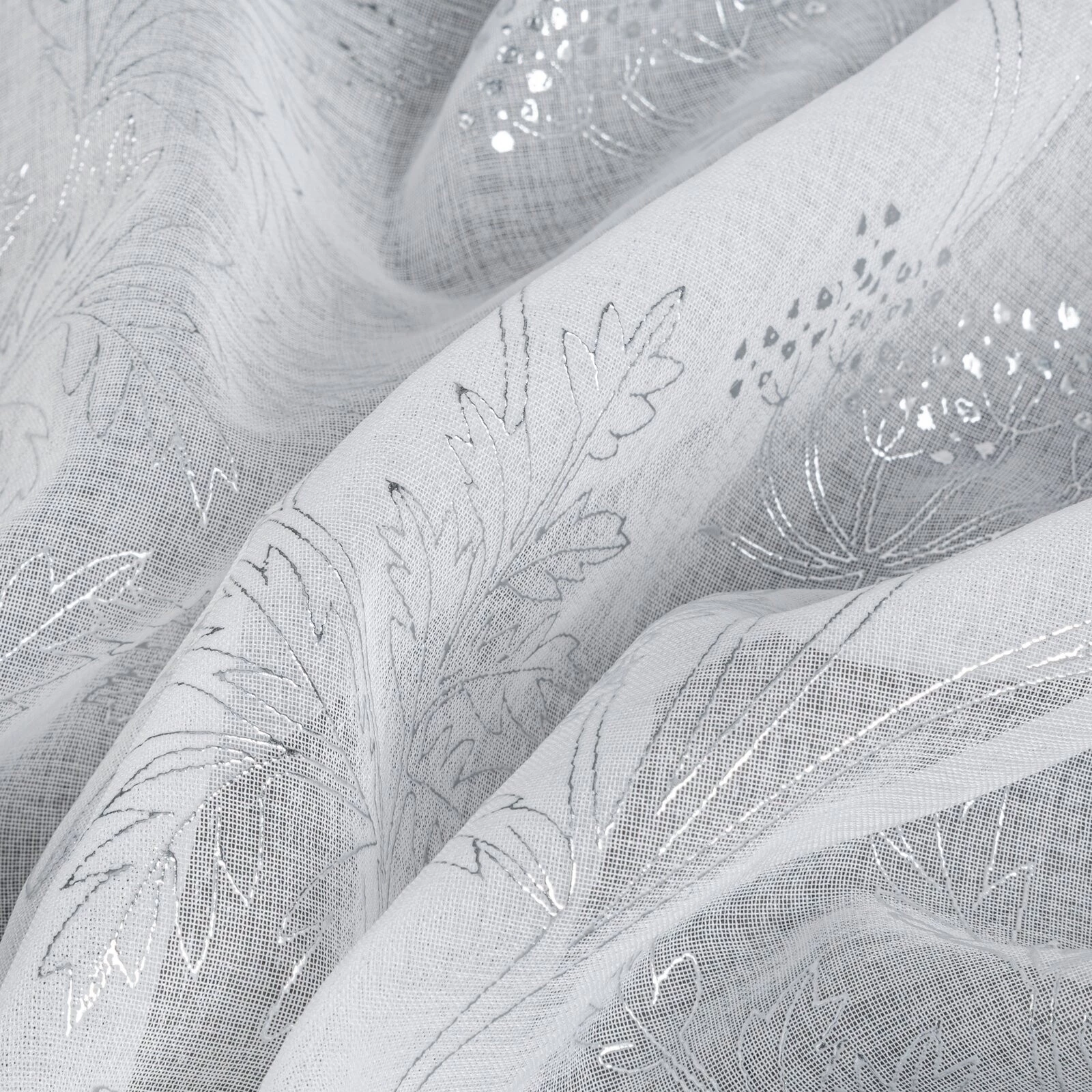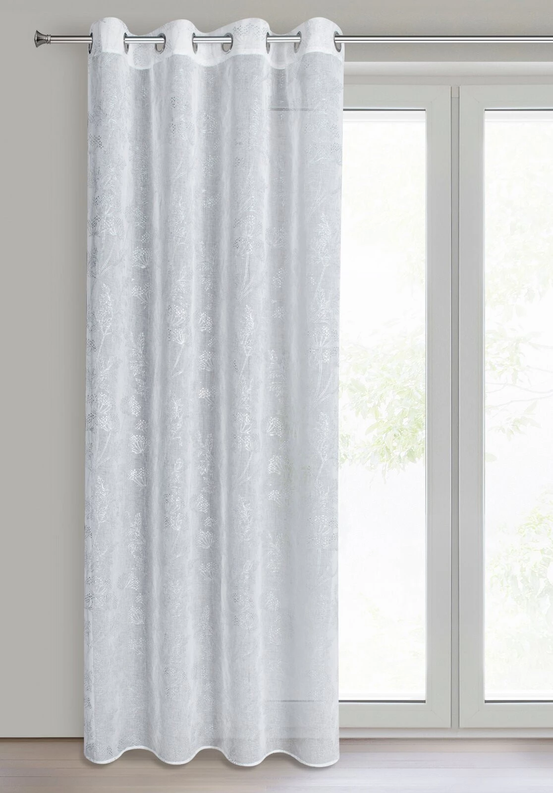 Zasłona gotowa z błyszczącym nadrukiem szerokość: 140 cm, długość: 250 cm, kolor: biały, Skład: 100% poliester