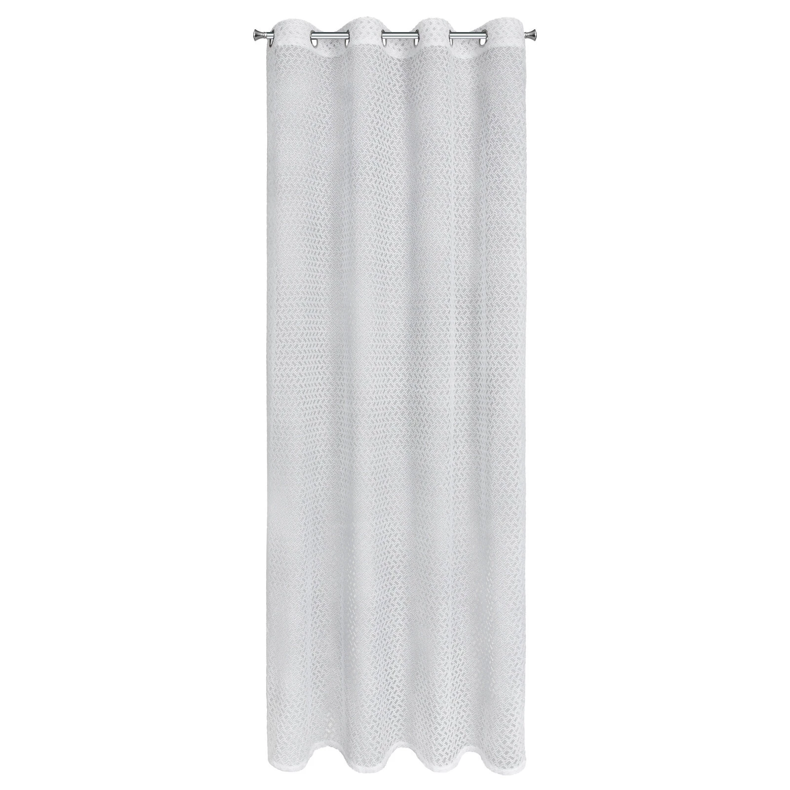 - Firana gotowa o strukturze siatki z błyszczącą nicią szerokość: 140 cm, długość: 250 cm, kolor: biały, Gramatura: 115 GSM, Skład: 100% poliester