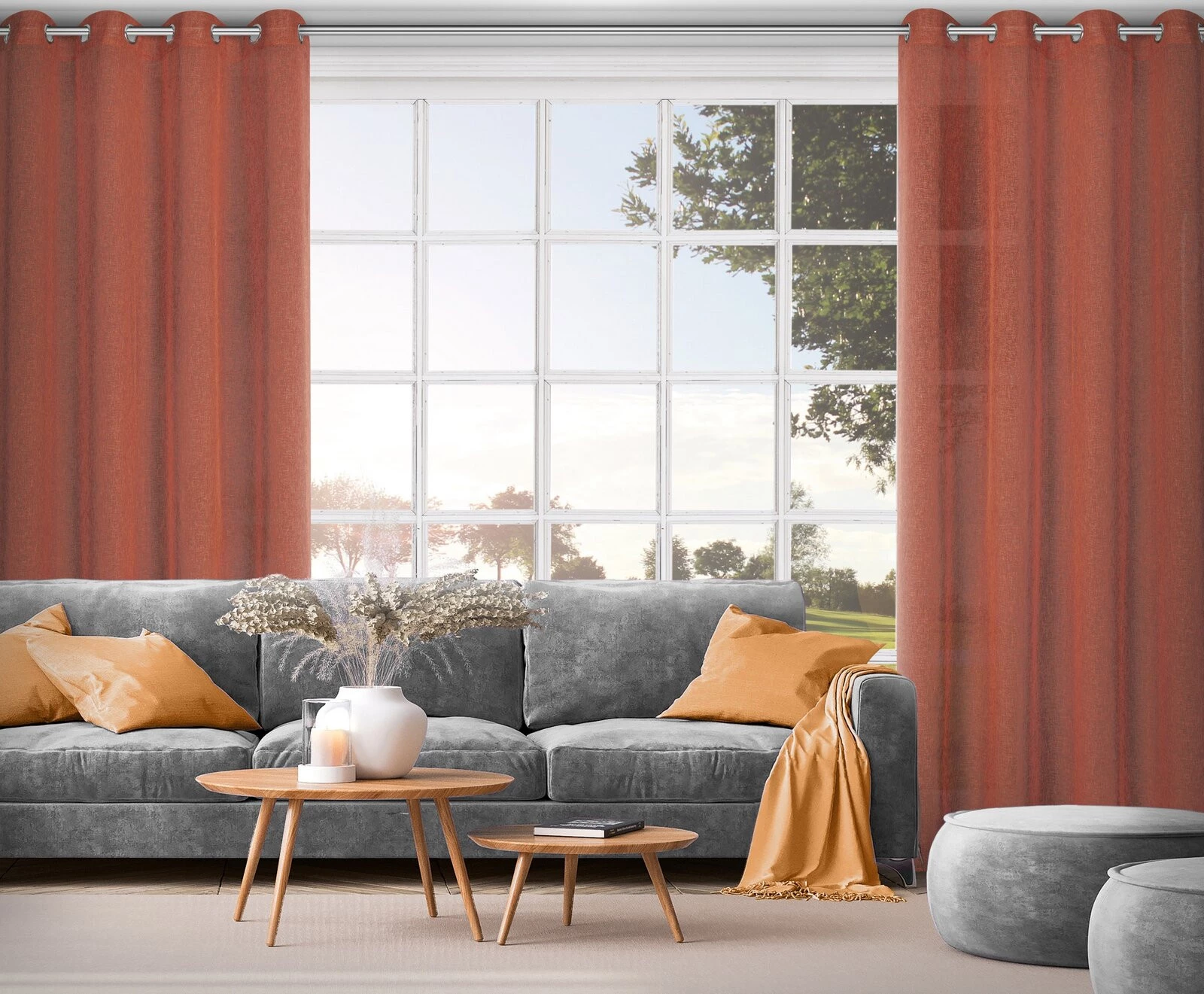 - Zasłona gotowa strukturalna w stylu eko szerokość: 140 cm, długość: 250 cm, kolor: rudy, Gramatura: 120 GSM, Skład: 100% poliester