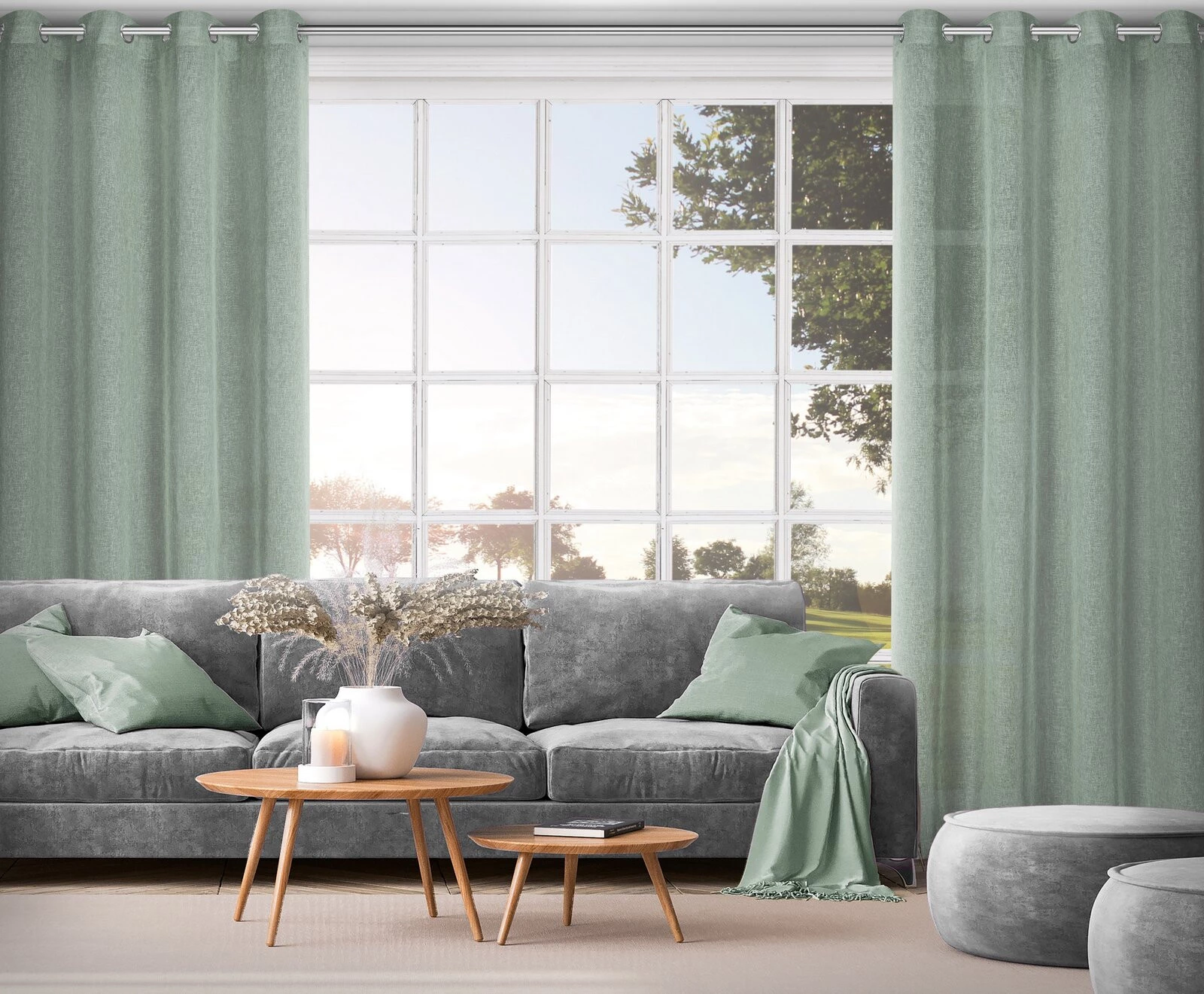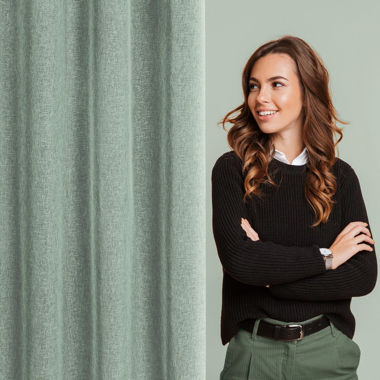 - Zasłona gotowa strukturalna w stylu eko szerokość: 140 cm, długość: 250 cm, kolor: miętowy, Gramatura: 120 GSM, Skład: 100% poliester