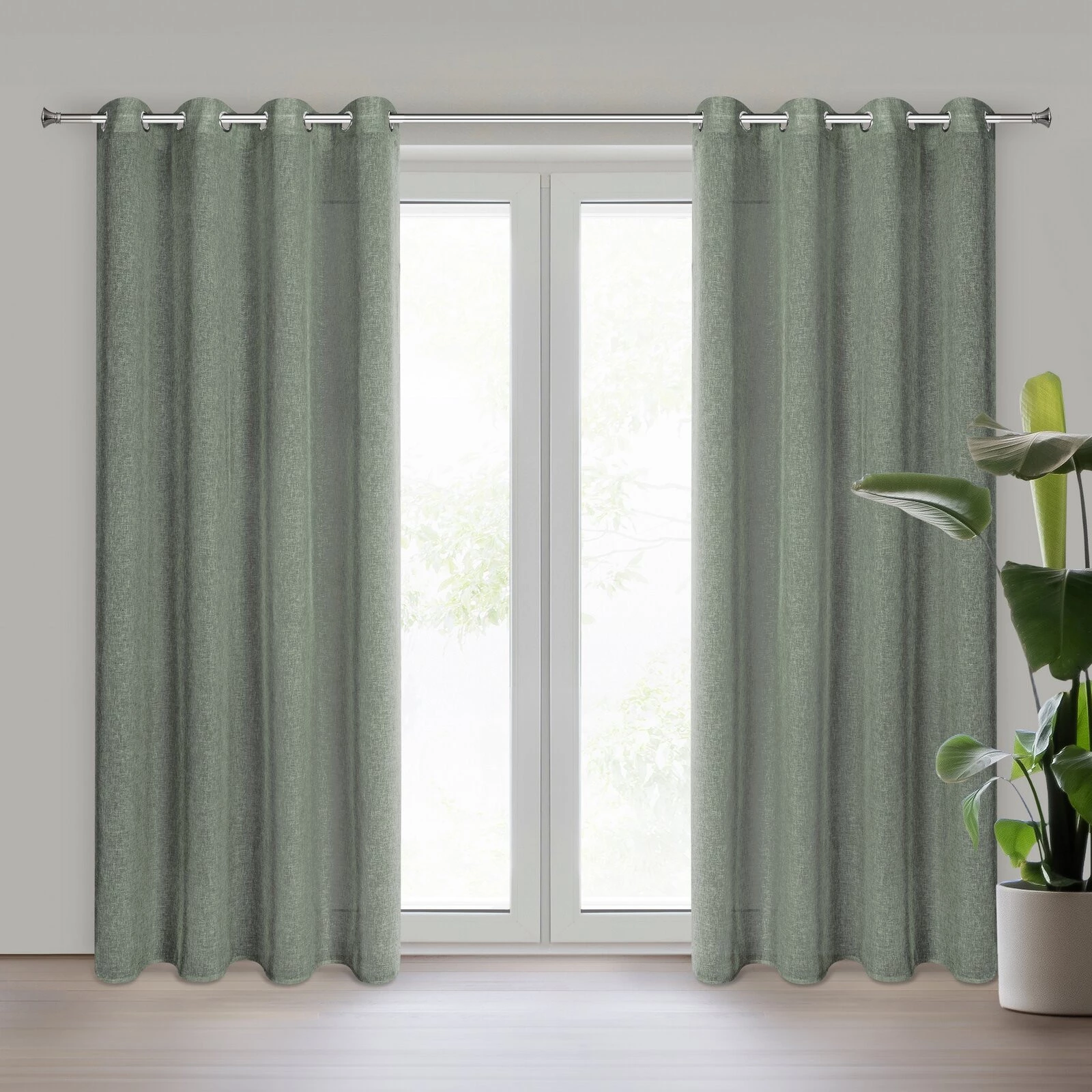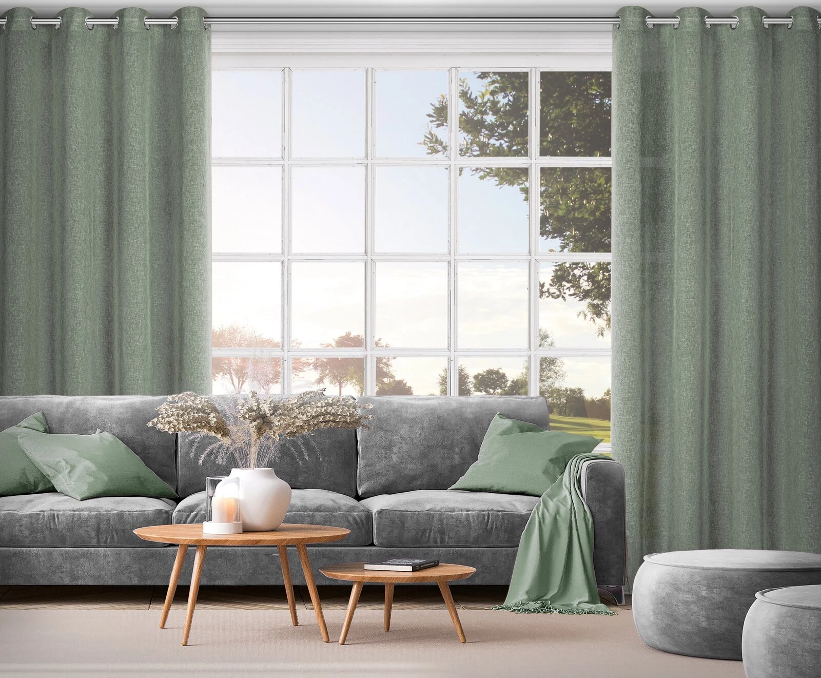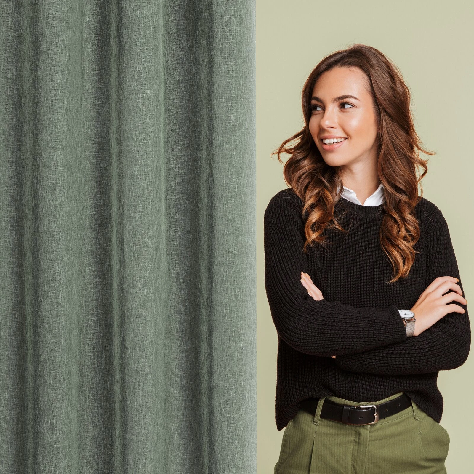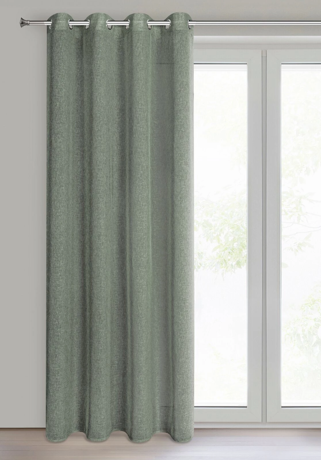 - Zasłona gotowa strukturalna w stylu eko szerokość: 140 cm, długość: 250 cm, kolor: zielony, Gramatura: 130 GSM, Skład: 100% poliester