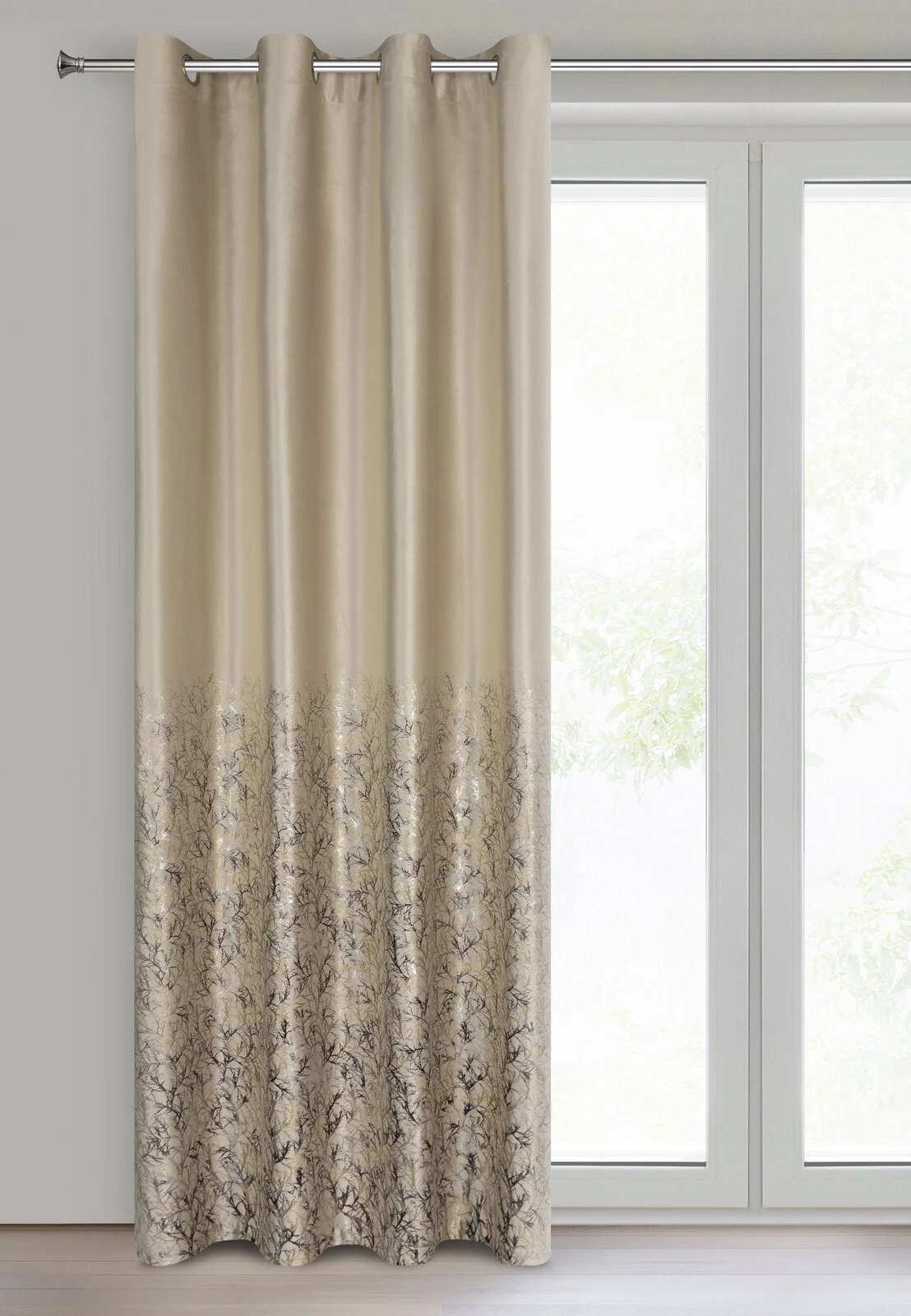 Zasłona welwetowa z metalicznym nadrukiem od dołu szerokość: 140 cm, długość: 250 cm, kolor: beżowy, Gramatura: 200 GSM, Skład: 100% poliester