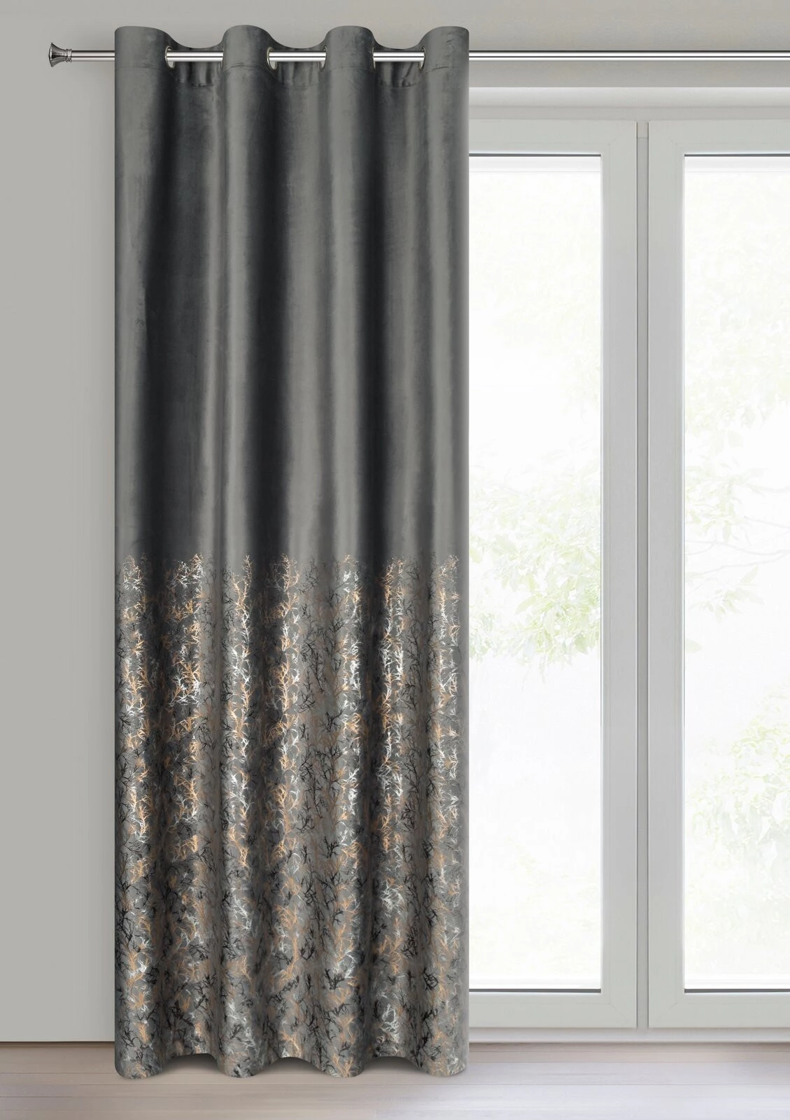 Zasłona welwetowa z metalicznym nadrukiem od dołu szerokość: 140 cm, długość: 250 cm, kolor: grafitowy, Gramatura: 200 GSM, Skład: 100% poliester