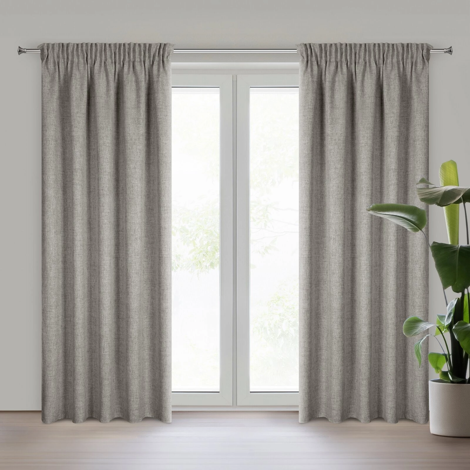 - Zasłona gotowa w stylu eko z efektem melanżu szerokość: 140 cm, długość: 270 cm, kolor: ciemnobeżowy, Gramatura: 205 GSM, Skład: 100% poliester