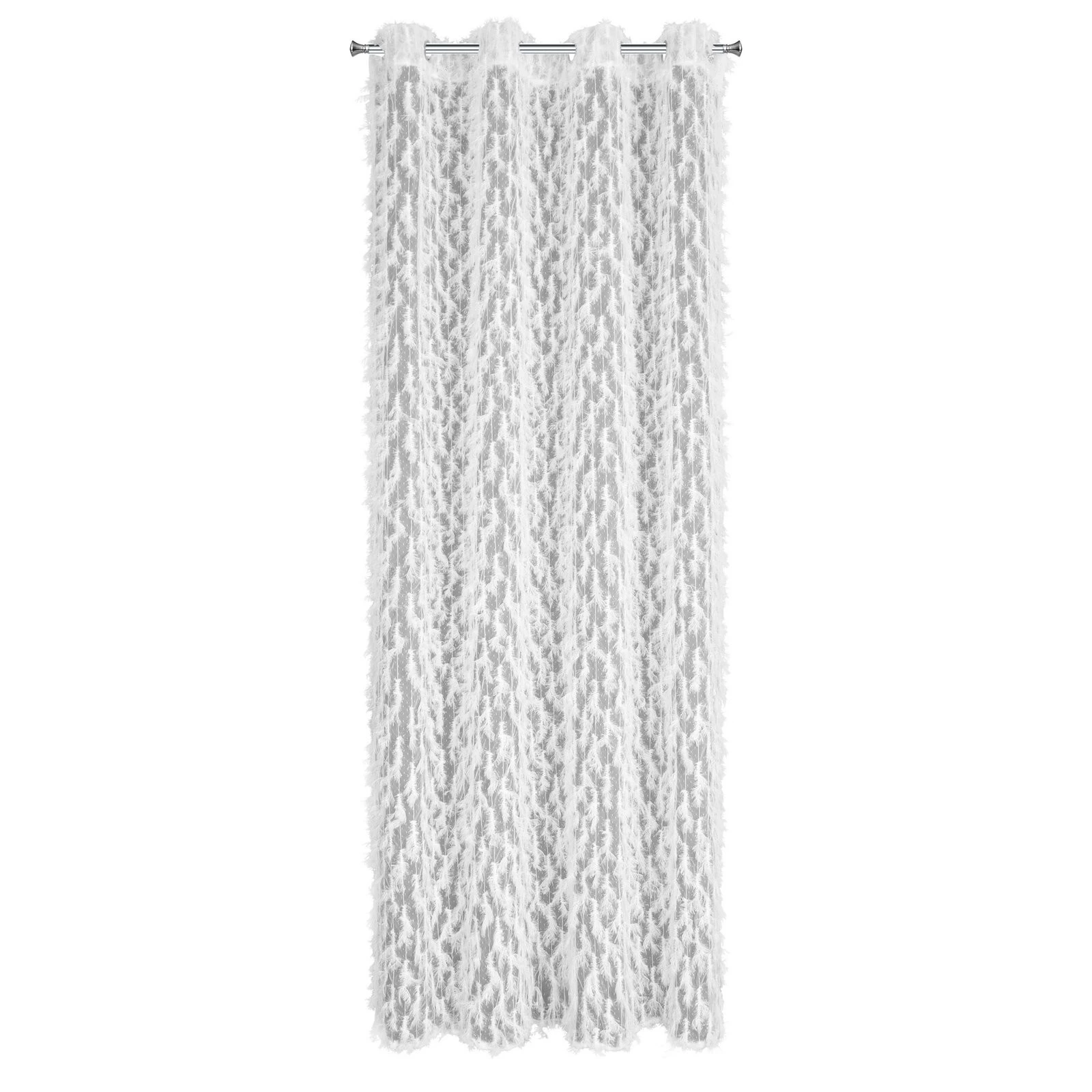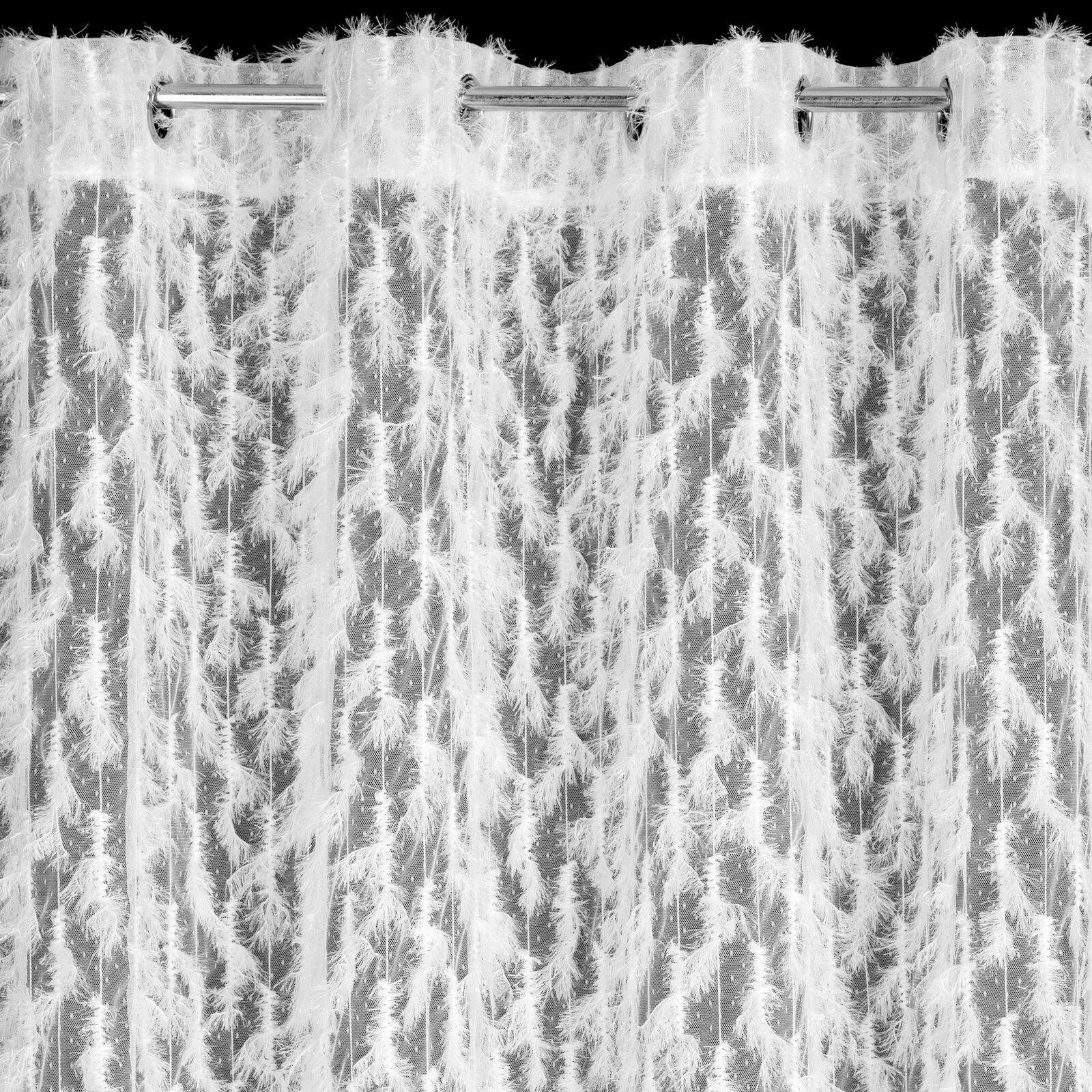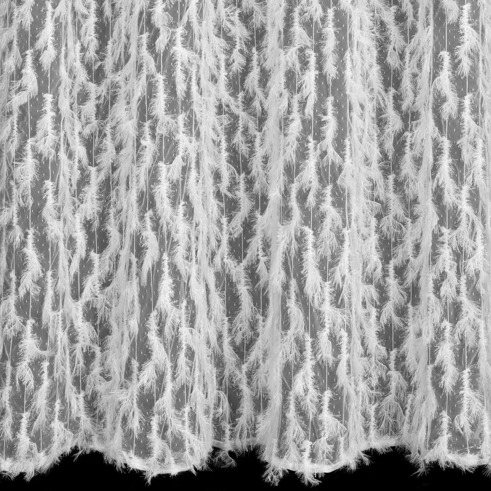 Zasłona gotowa z aplikacją oraz z błyszczącą nicią szerokość: 140 cm, długość: 250 cm, kolor: biały, Gramatura: 100 GSM, Skład: 100% poliester