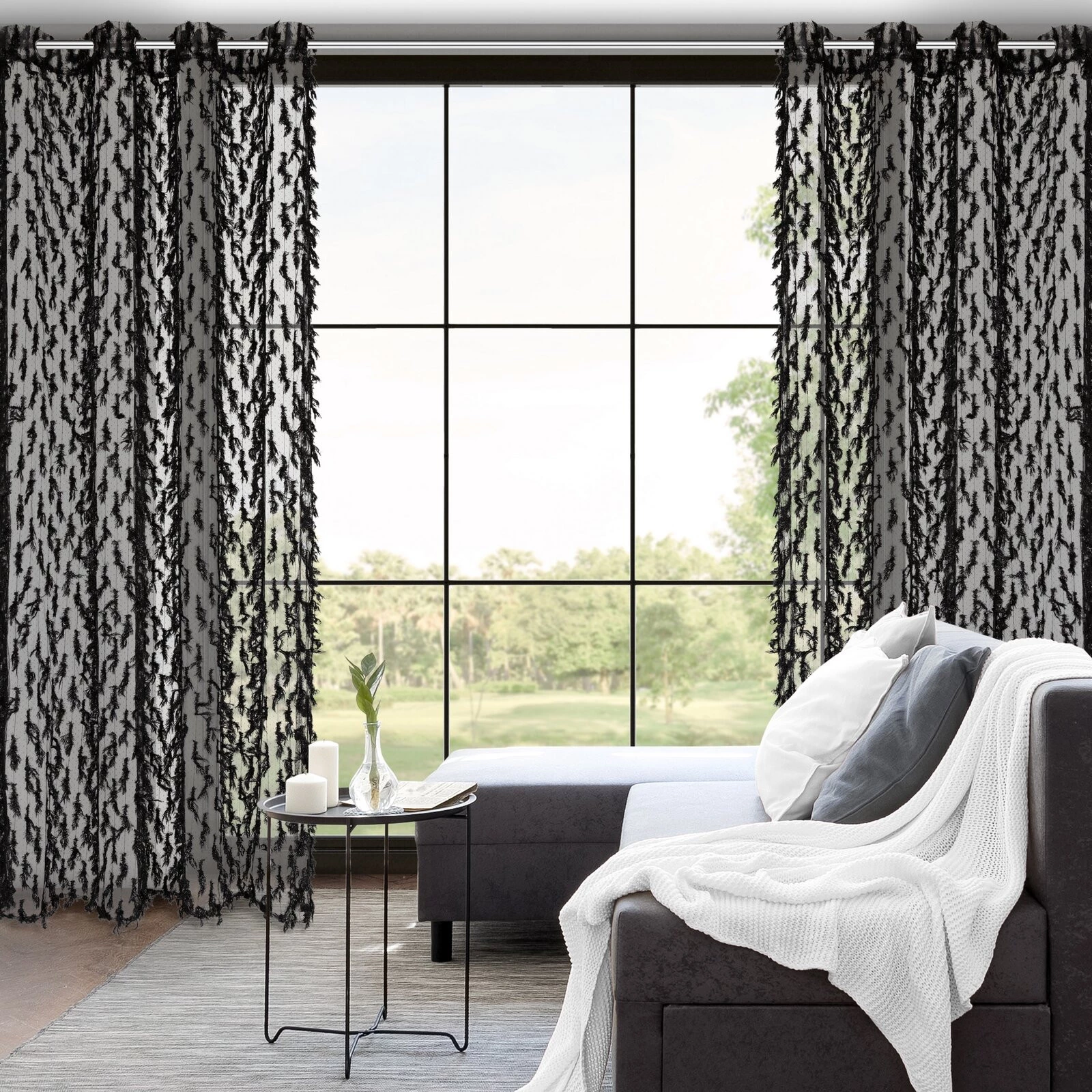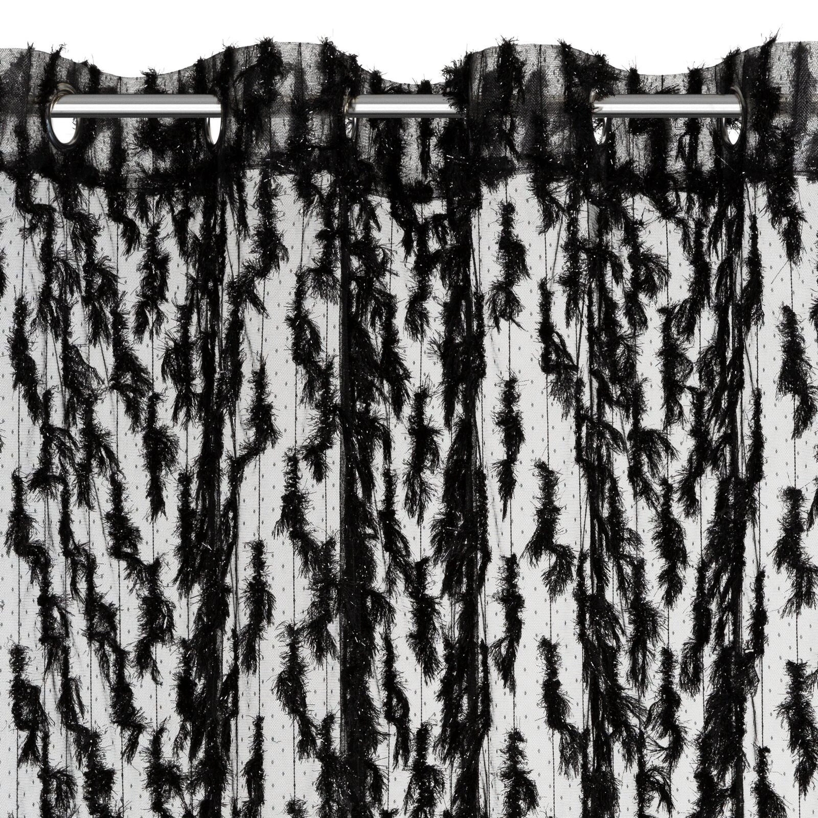 - Zasłona gotowa z aplikacją oraz z błyszczącą nicią szerokość: 140 cm, długość: 250 cm, kolor: czarny, Gramatura: 105 GSM, Skład: 100% poliester