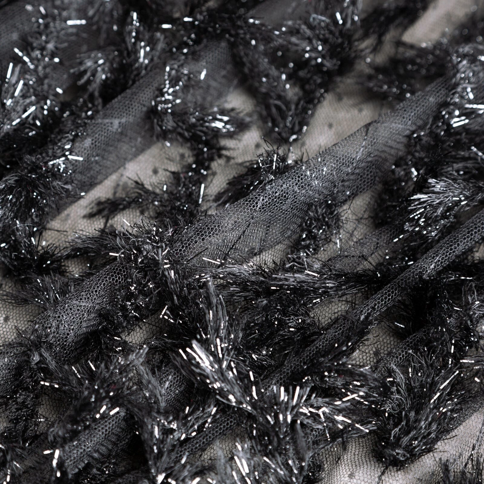 Zasłona gotowa z aplikacją oraz z błyszczącą nicią szerokość: 140 cm, długość: 250 cm, kolor: czarny, Gramatura: 105 GSM, Skład: 100% poliester