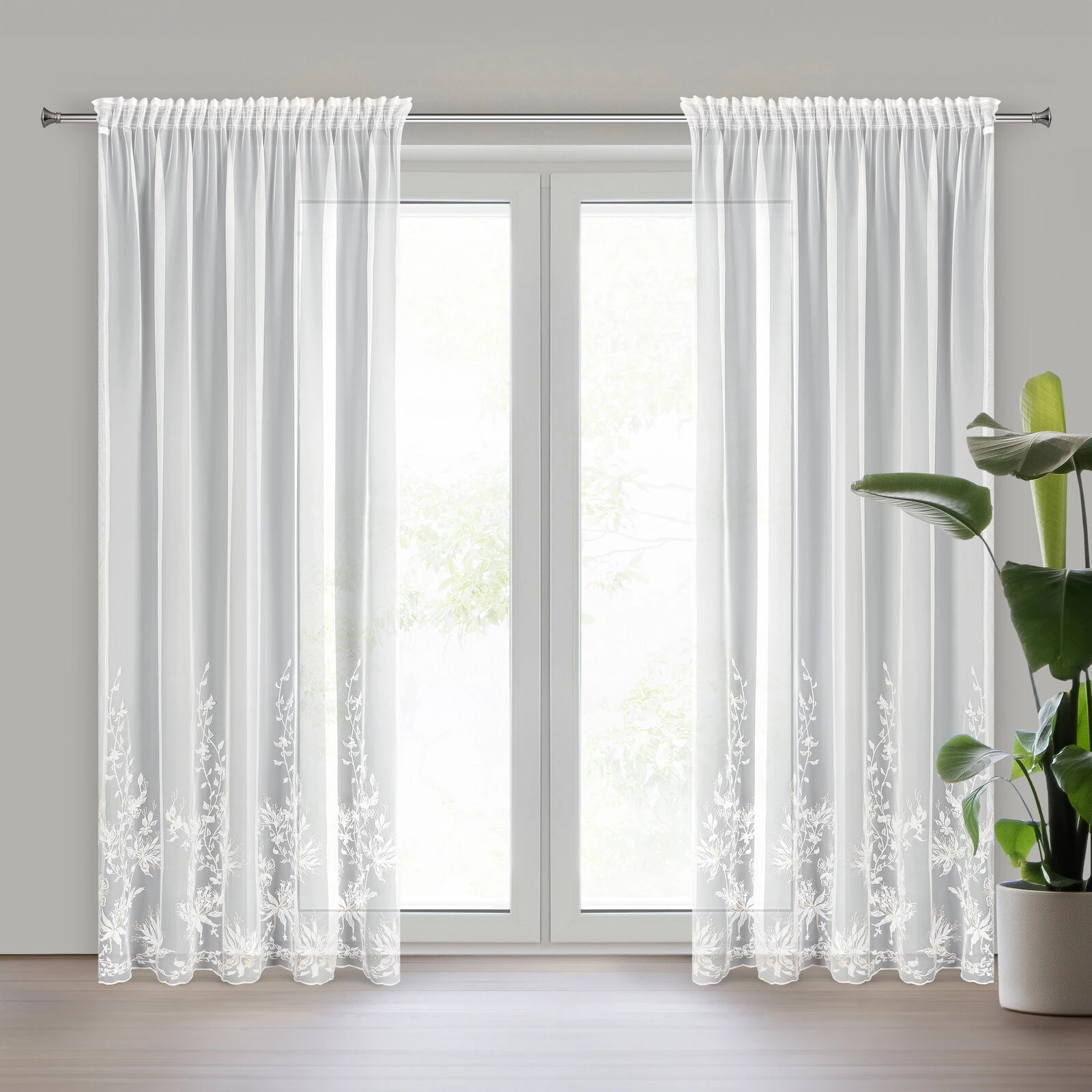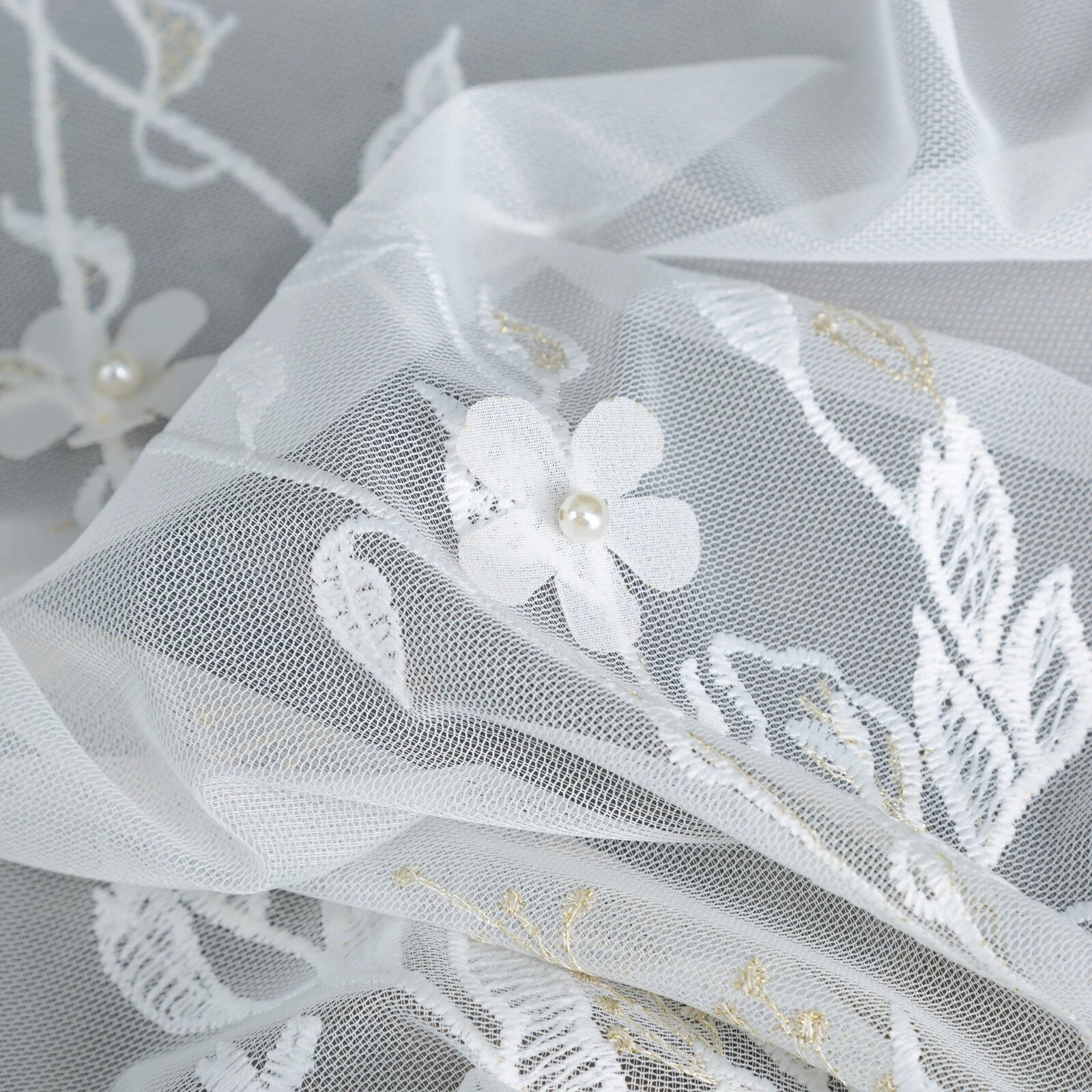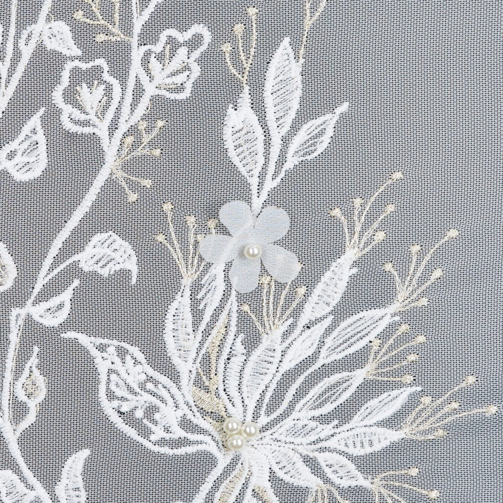 Firana gotowa zdobiona haftem z błyszczącej nici oraz perełkami szerokość: 140 cm, długość: 270 cm, kolor: biały, Gramatura: 55 GSM, Skład: 100% poliester