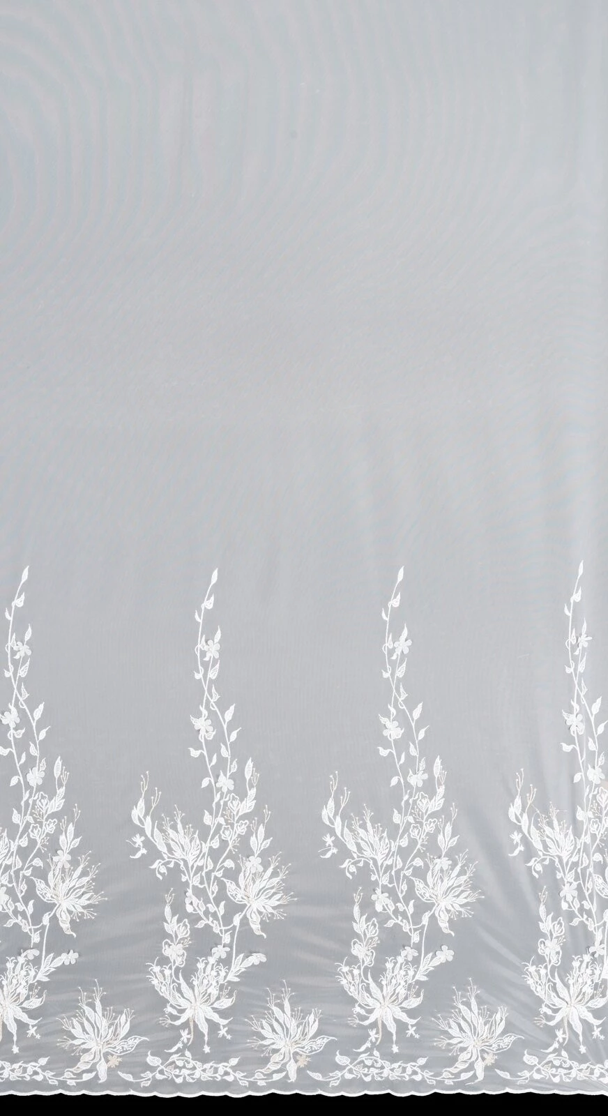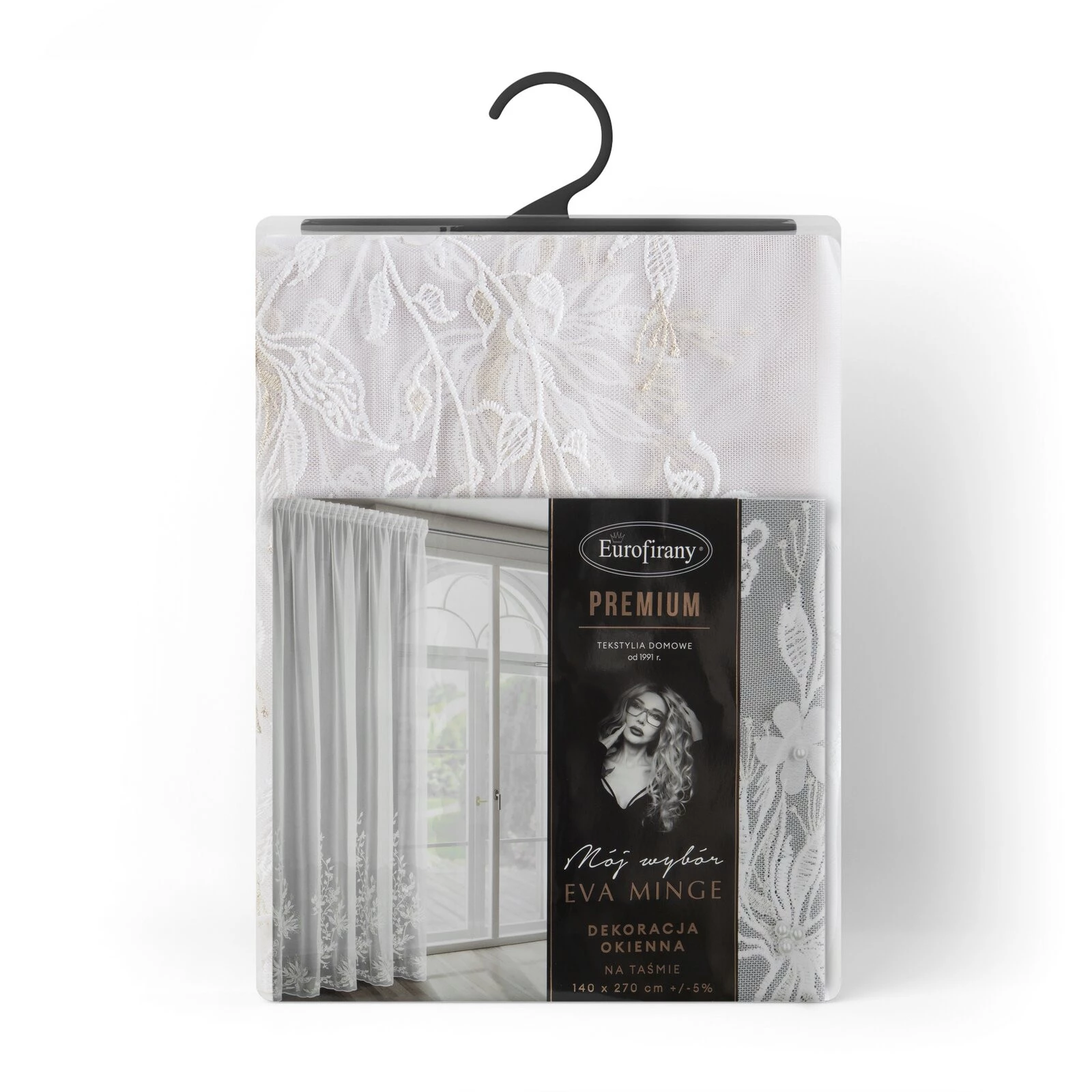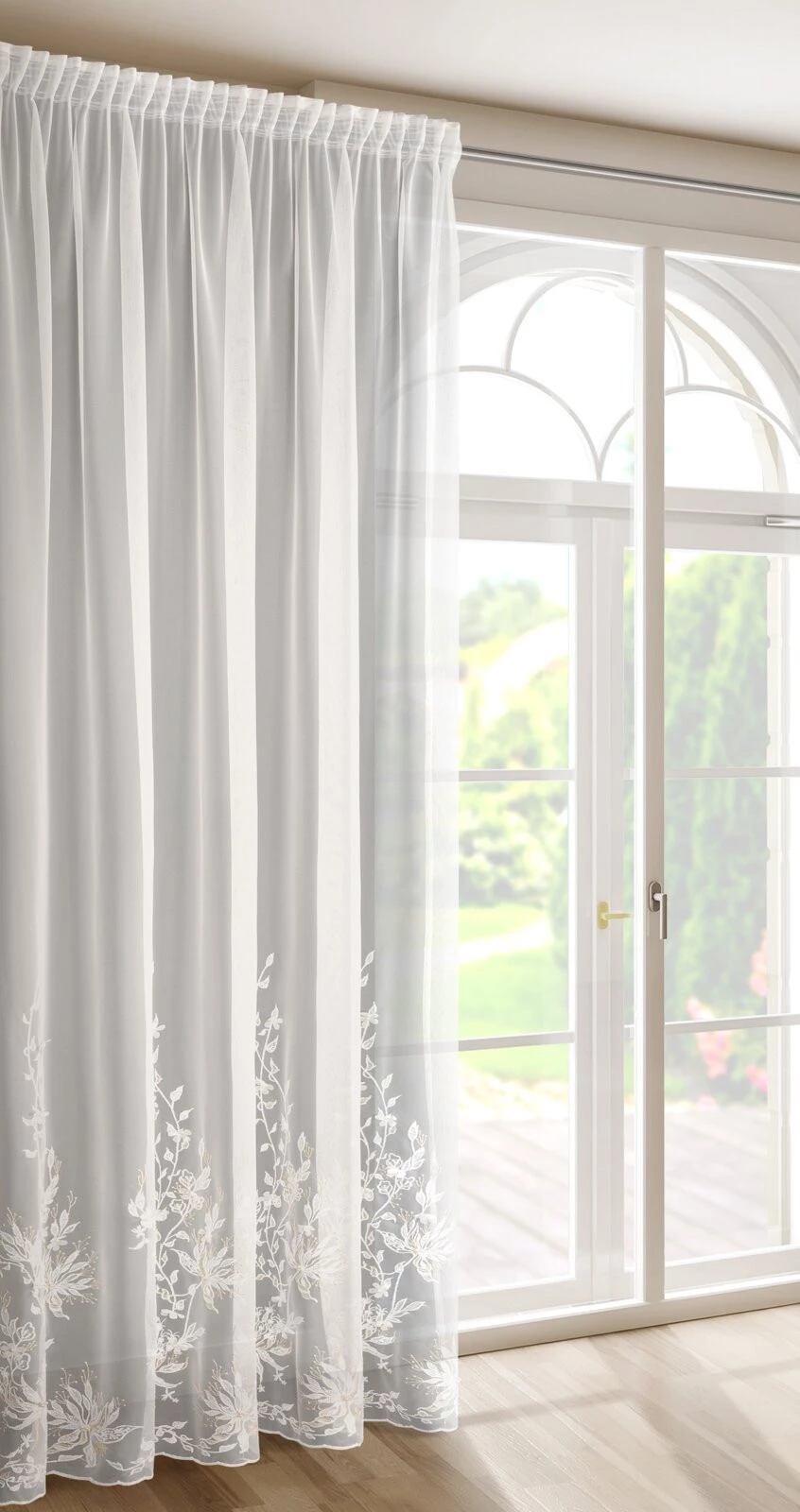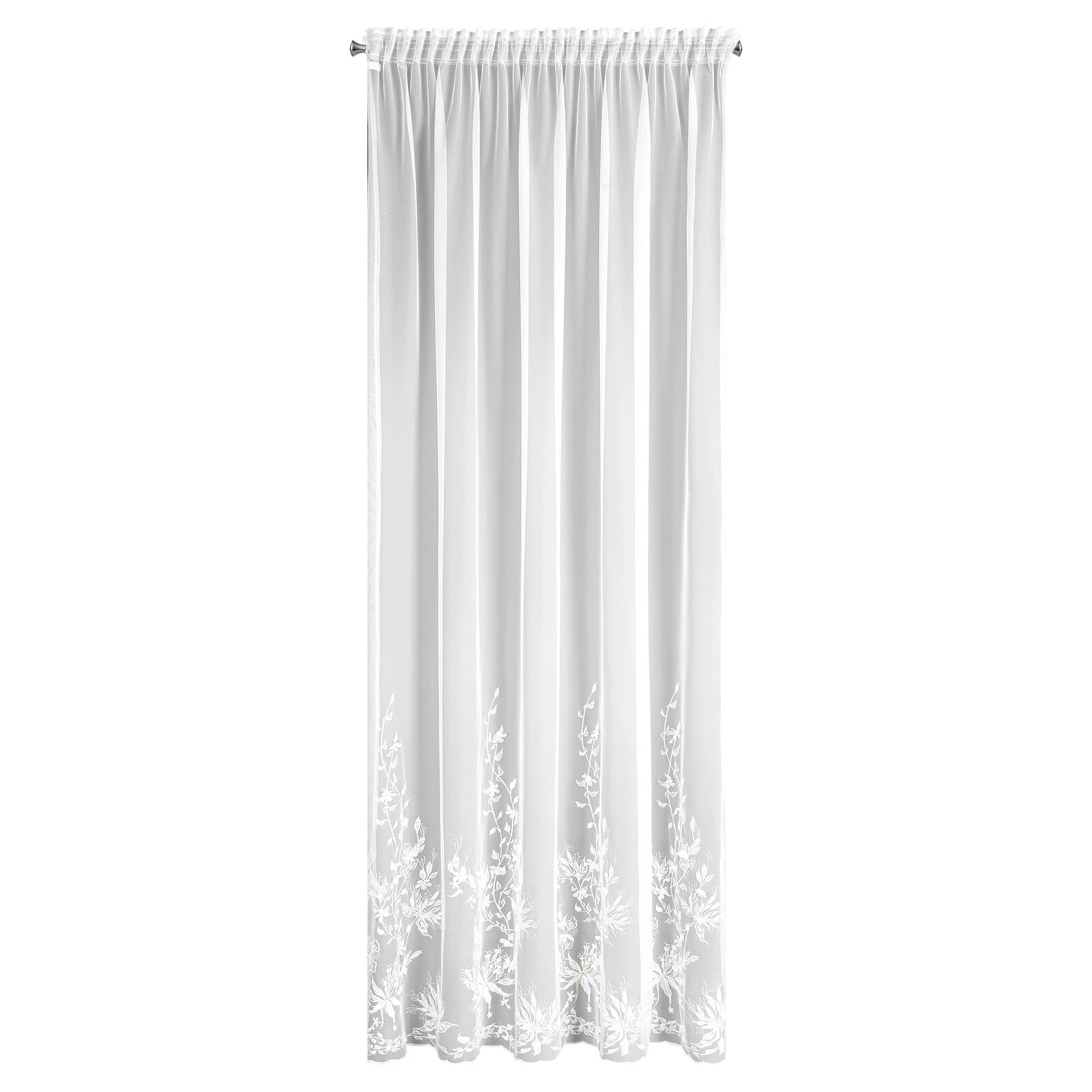 - Firana gotowa zdobiona haftem z błyszczącej nici oraz perełkami szerokość: 140 cm, długość: 270 cm, kolor: biały, Gramatura: 55 GSM, Skład: 100% poliester