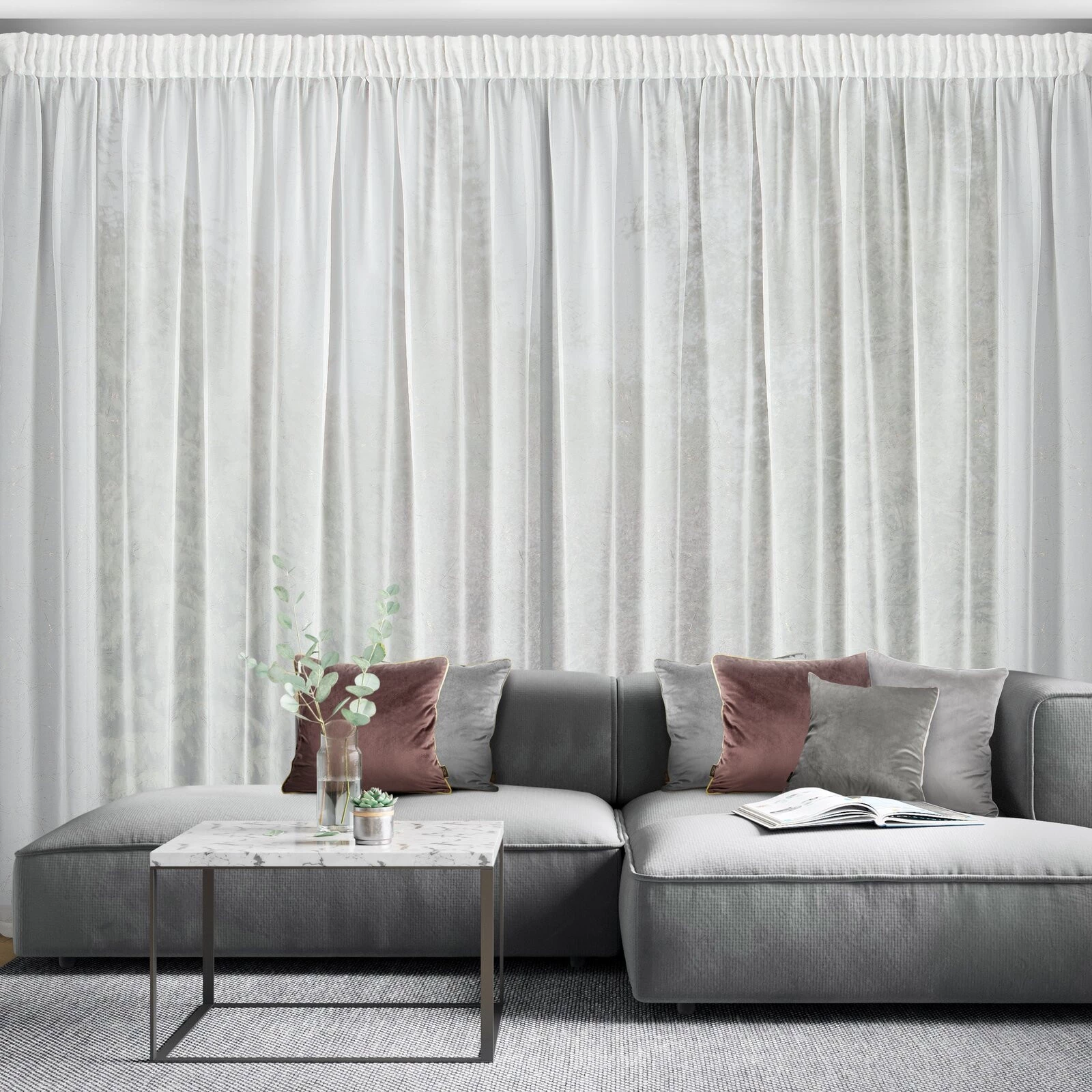 Firana gotowa szyfonowa z błyszczącym nadrukiem szerokość: 300 cm, długość: 270 cm, kolor: biały, Gramatura: 85 GSM, Skład: 100% poliester