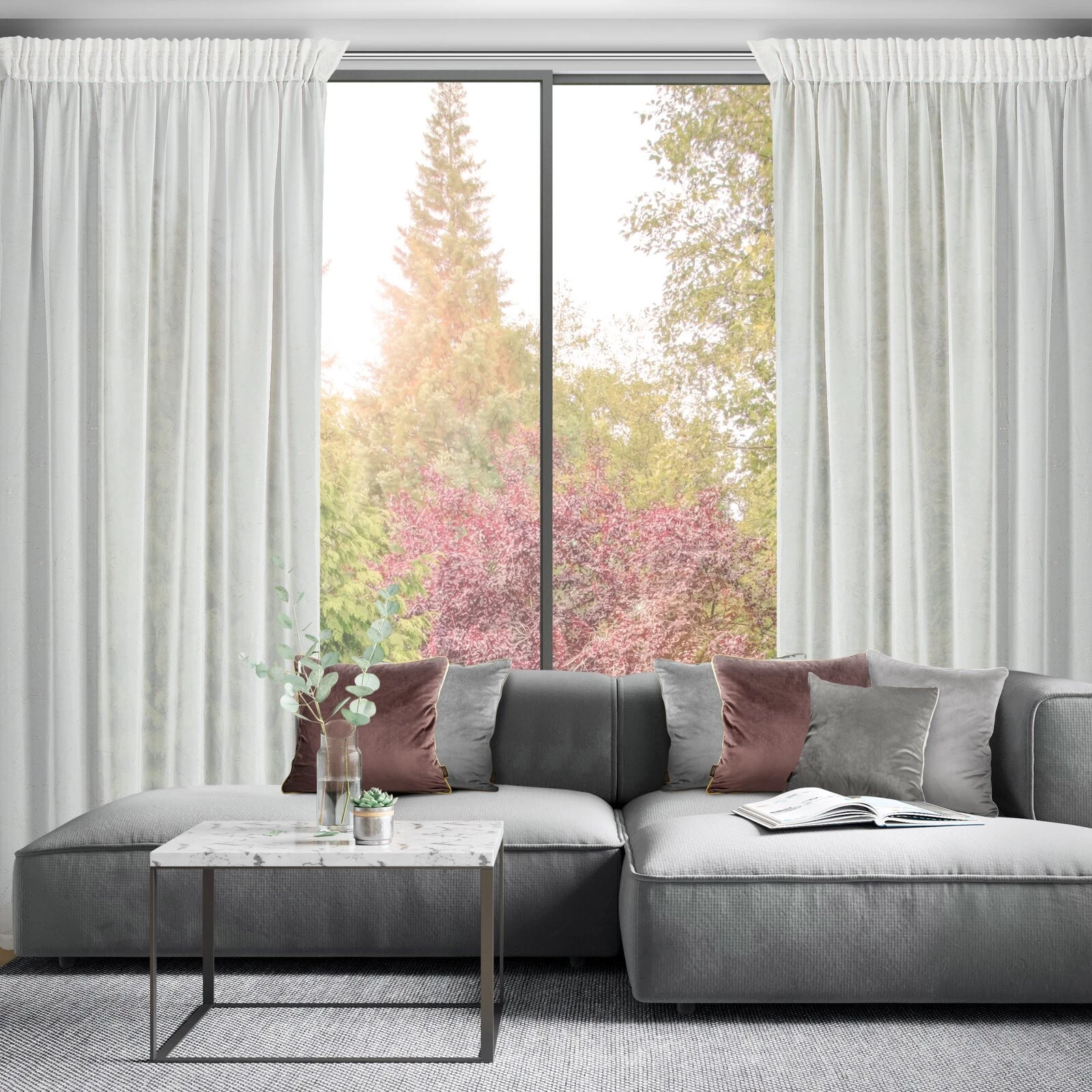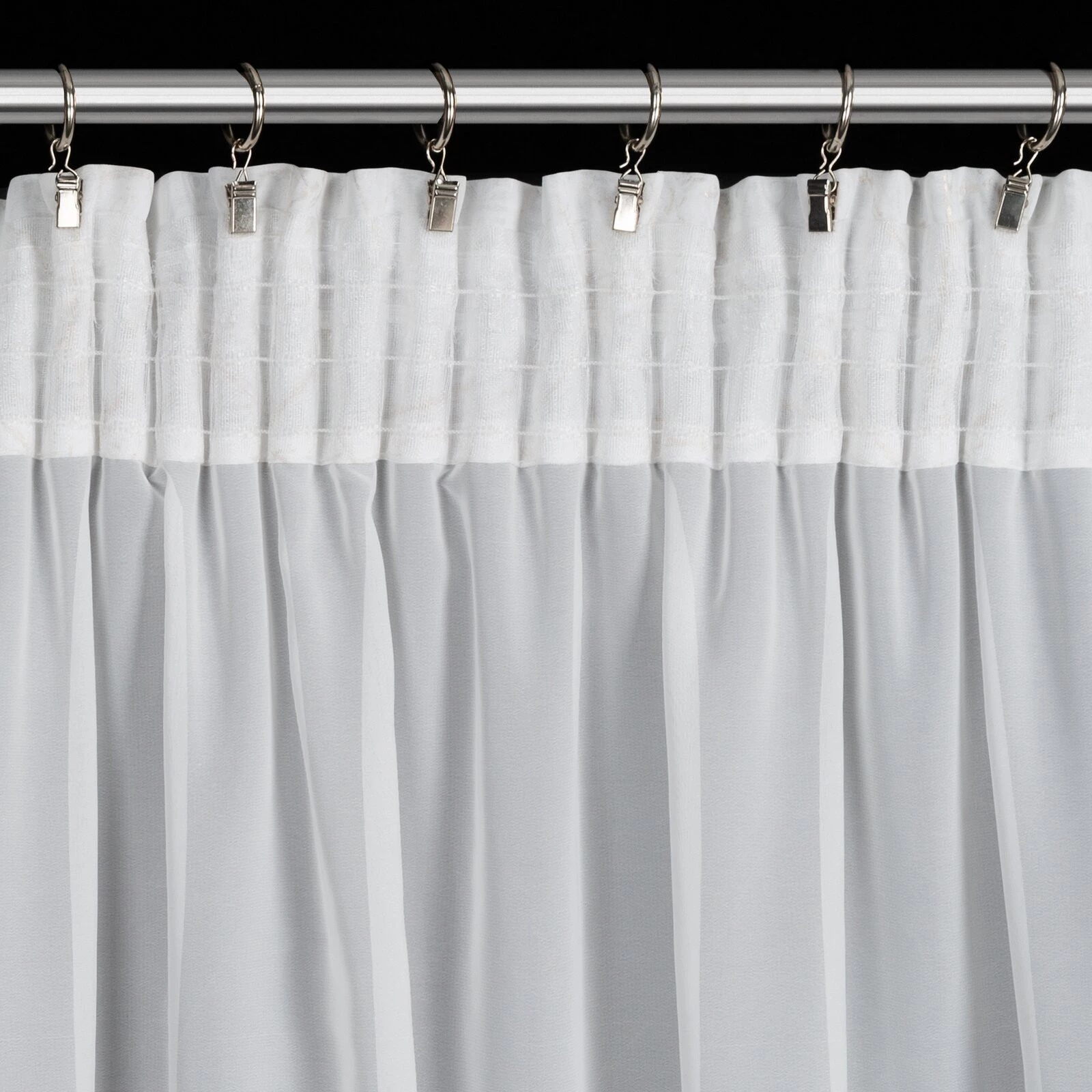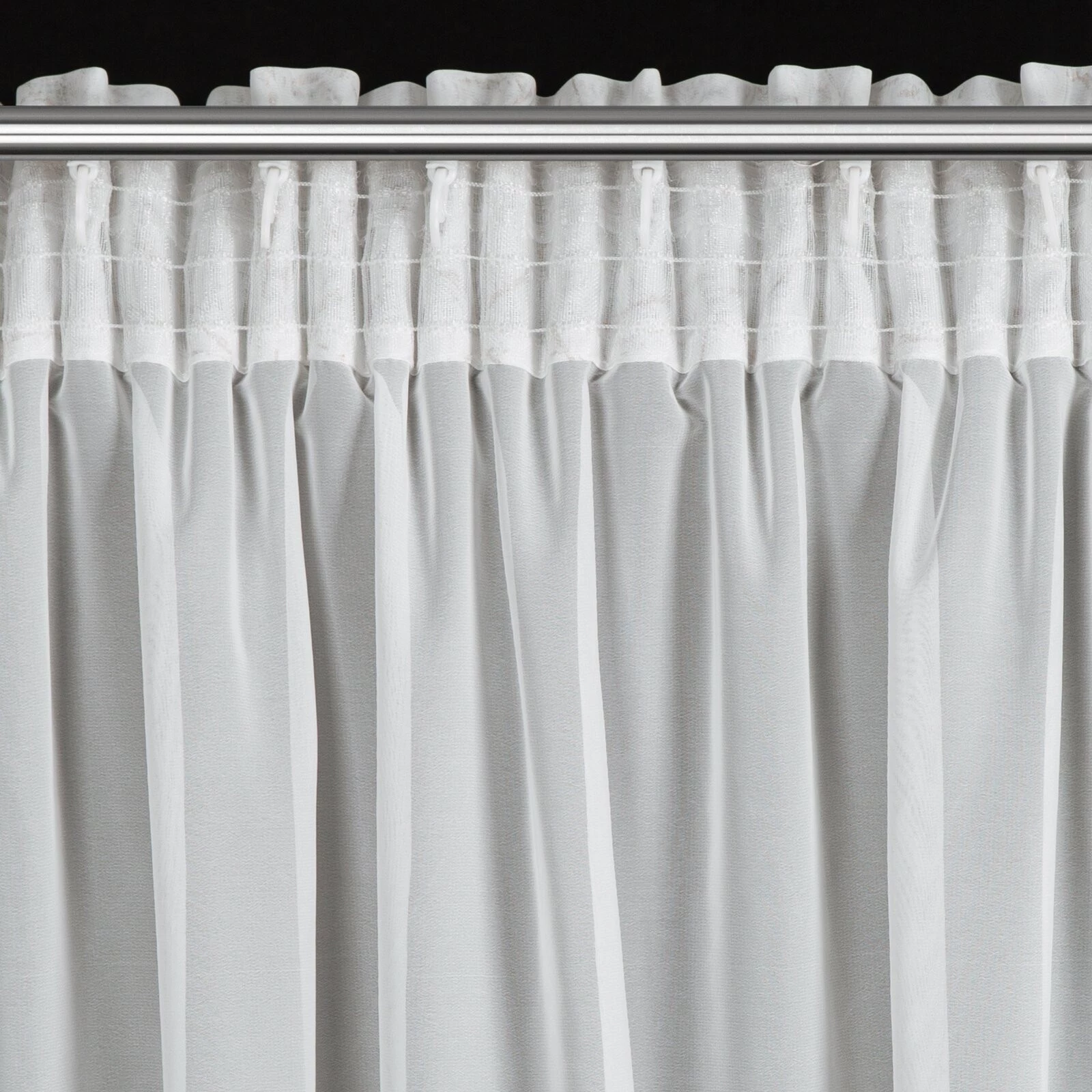 Firana gotowa szyfonowa z błyszczącym nadrukiem szerokość: 140 cm, długość: 270 cm, kolor: biały, Gramatura: 85 GSM, Skład: 100% poliester