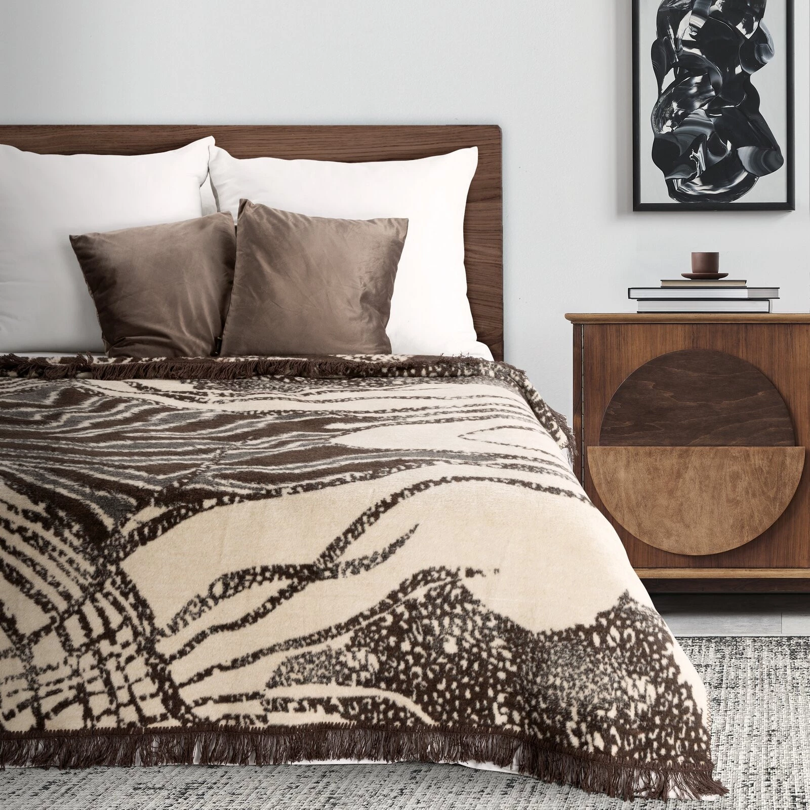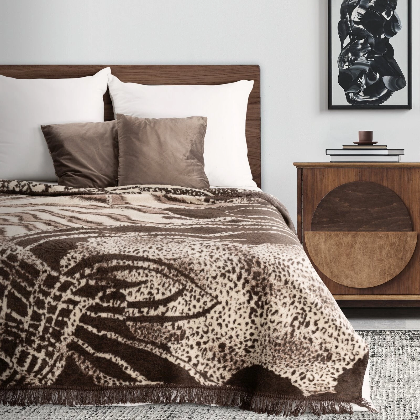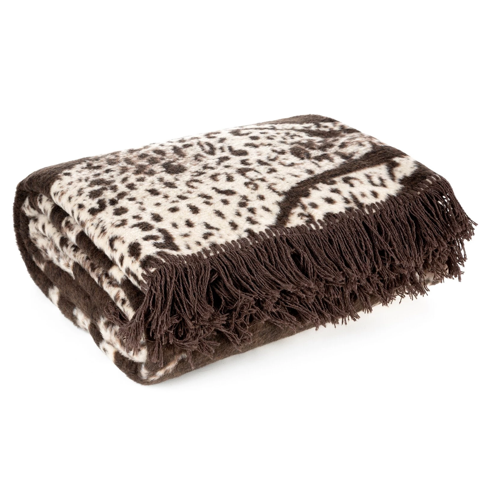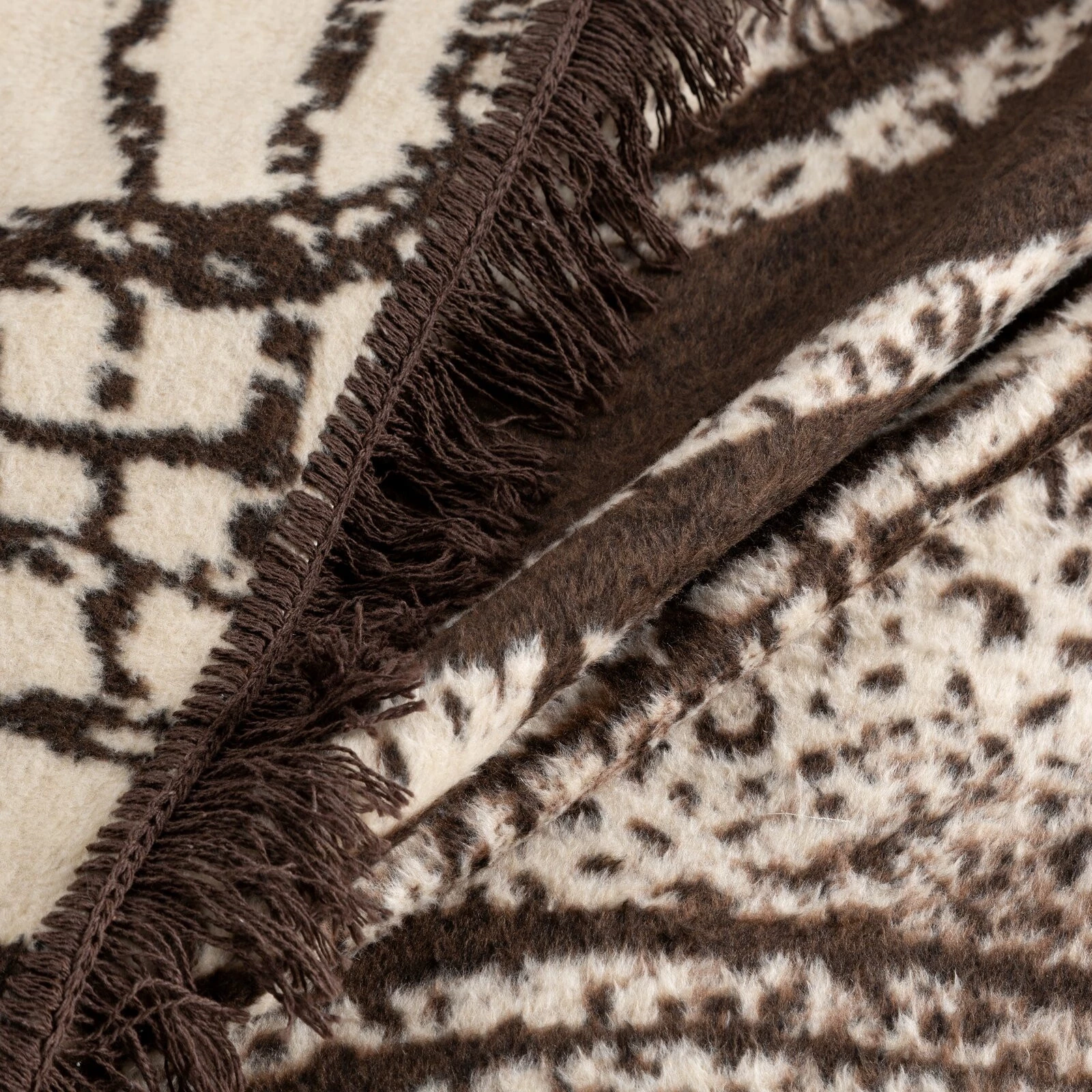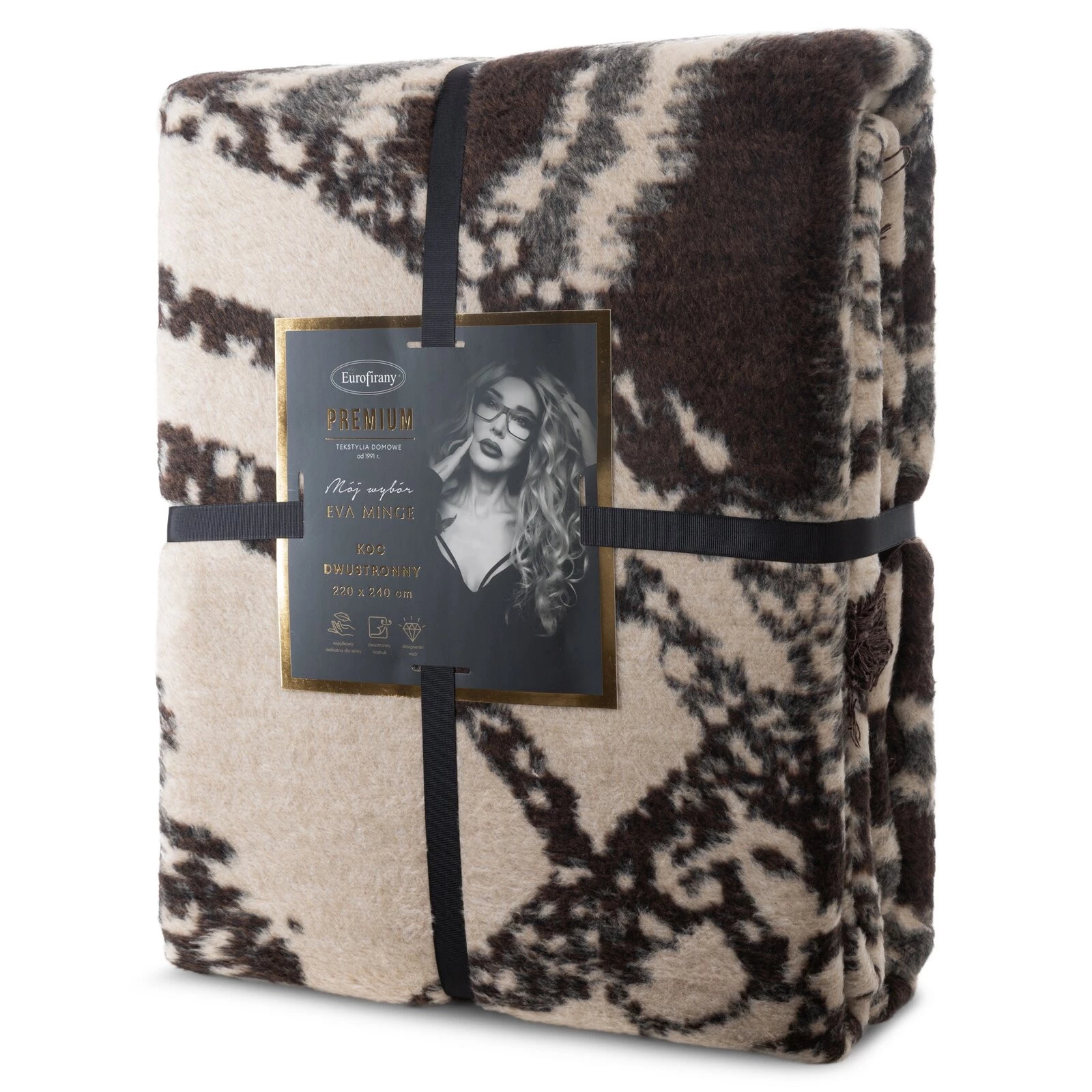 Koc bawełniano akrylowy z frędzlami szerokość: 220 cm, długość: 240 cm, kolor: brązowy, Gramatura: 450 GSM, Skład: 58% bawełna, 32% akryl, 10% poliester