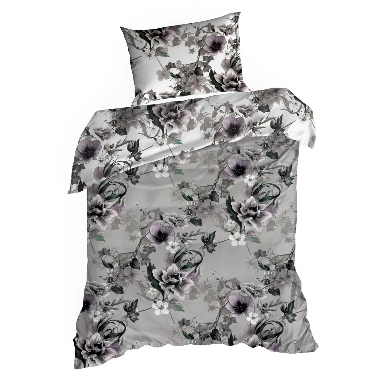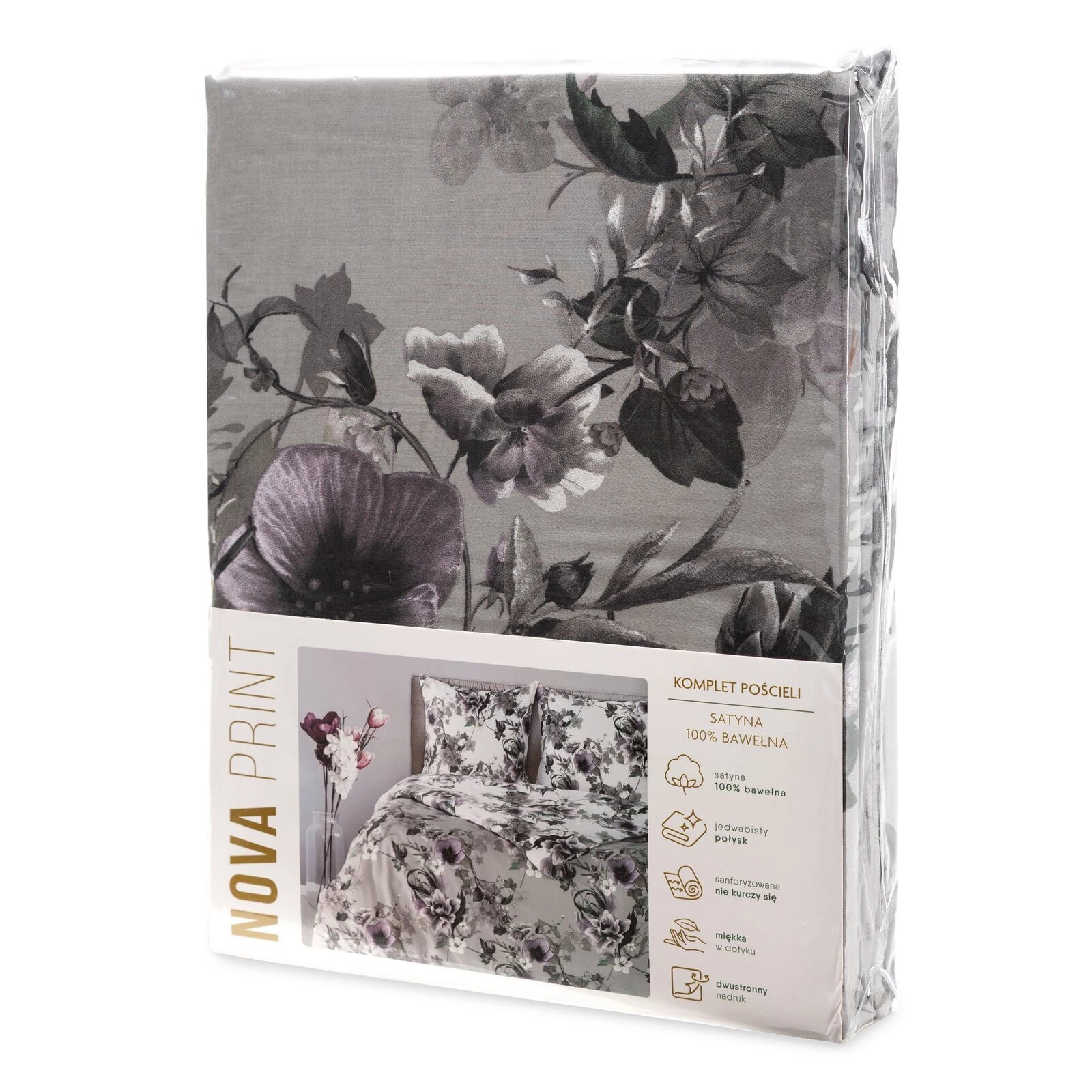 Komplet pościeli z satyny bawełnianej z nadrukiem szerokość: 220 cm, długość: 200 cm, kolor: popielaty, Gramatura: 125 GSM, Skład: satyna, 100% bawełna