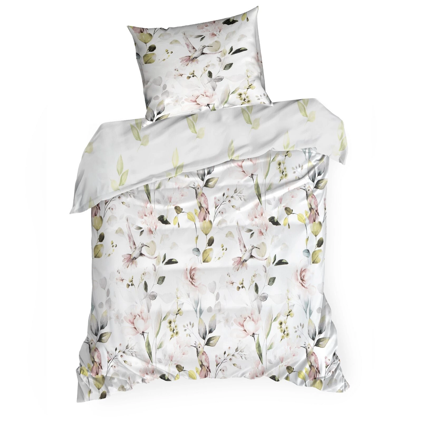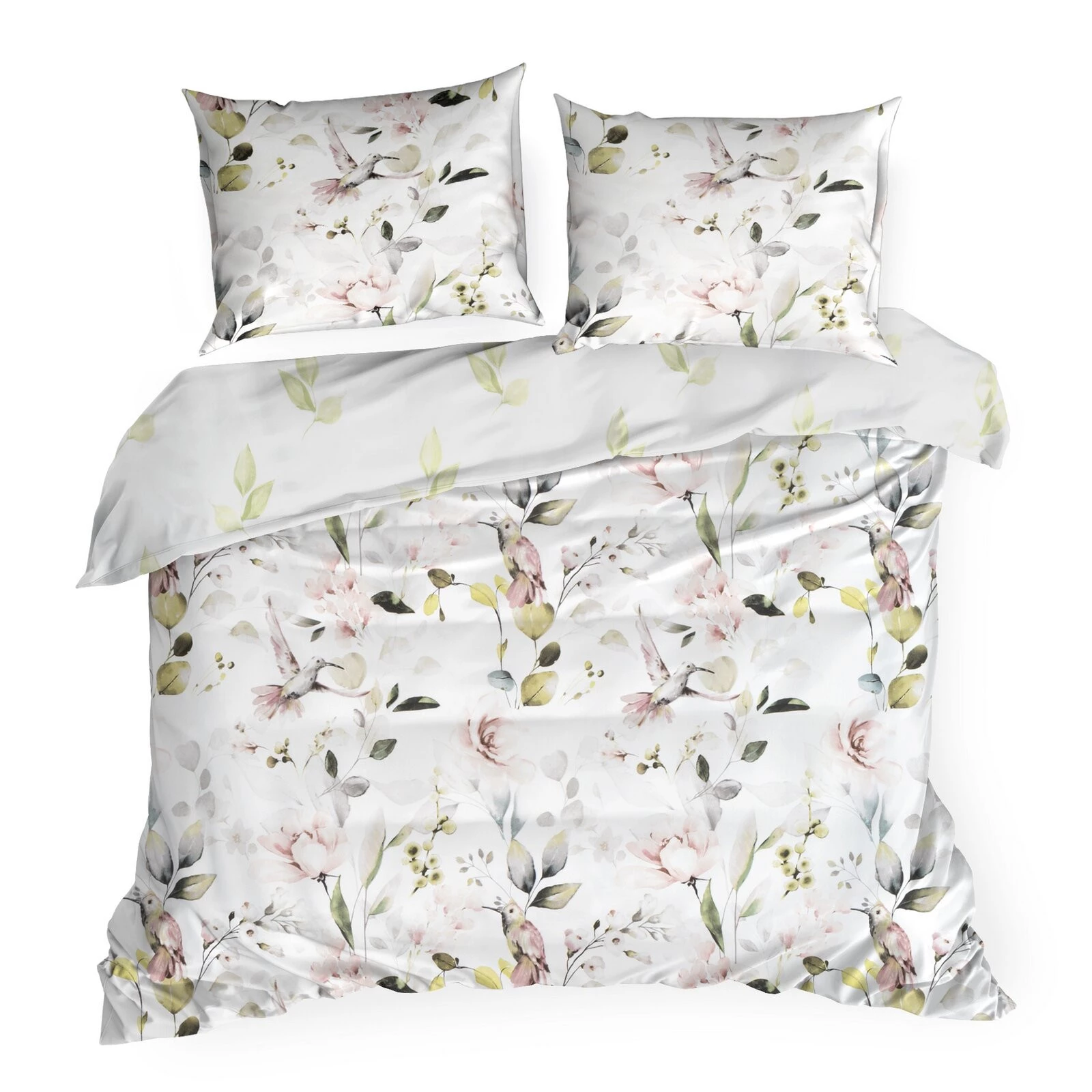 Komplet pościeli dwustronnej z nadrukiem, splot satynowy szerokość: 220 cm, długość: 200 cm, kolor: biały, Gramatura: 125 GSM, Skład: 55% bawełna, 45% poliester