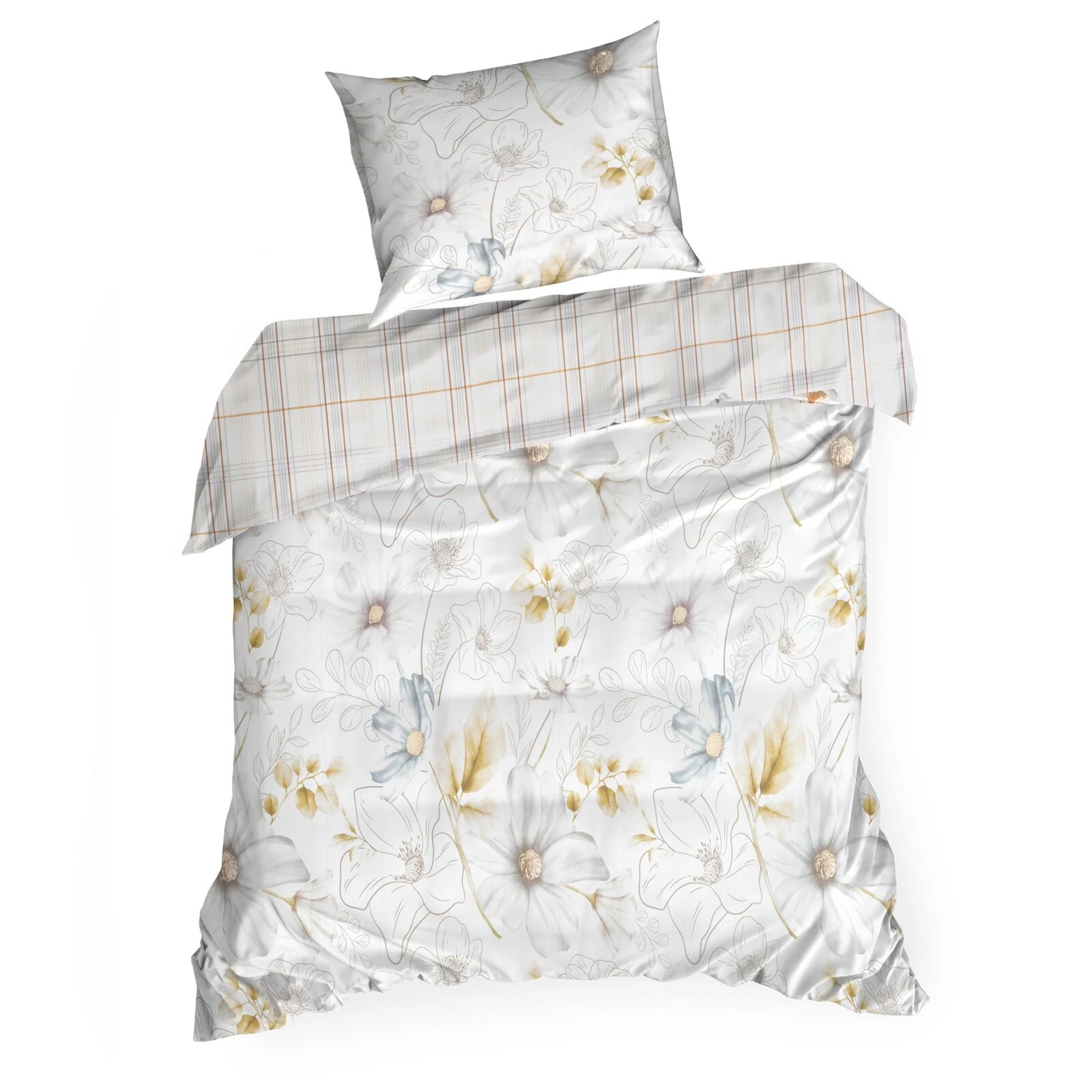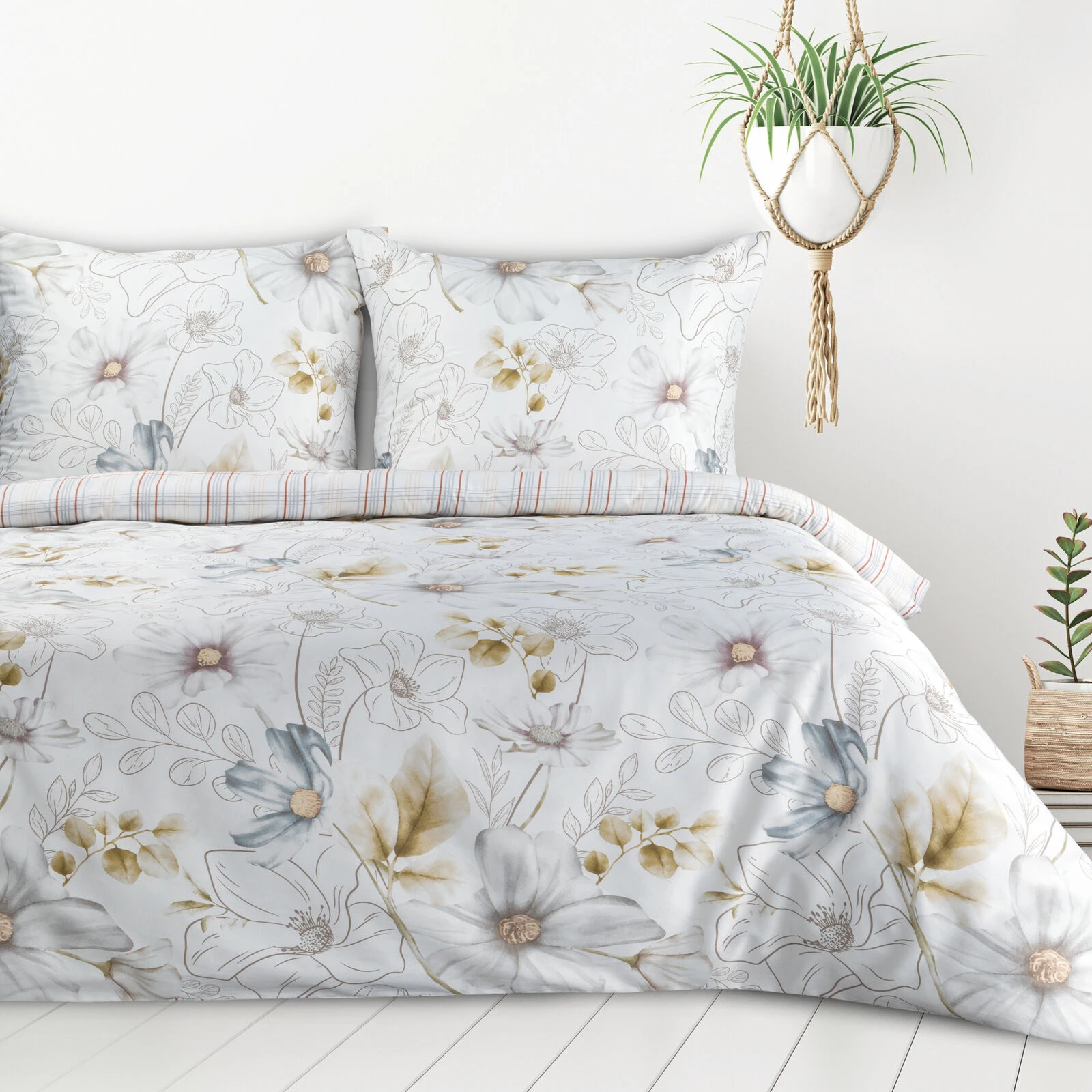 Komplet pościeli dwustronnej z nadrukiem, splot satynowy szerokość: 140 cm, długość: 200 cm, kolor: biały, Gramatura: 125 GSM, Skład: 55% bawełna, 45% poliester