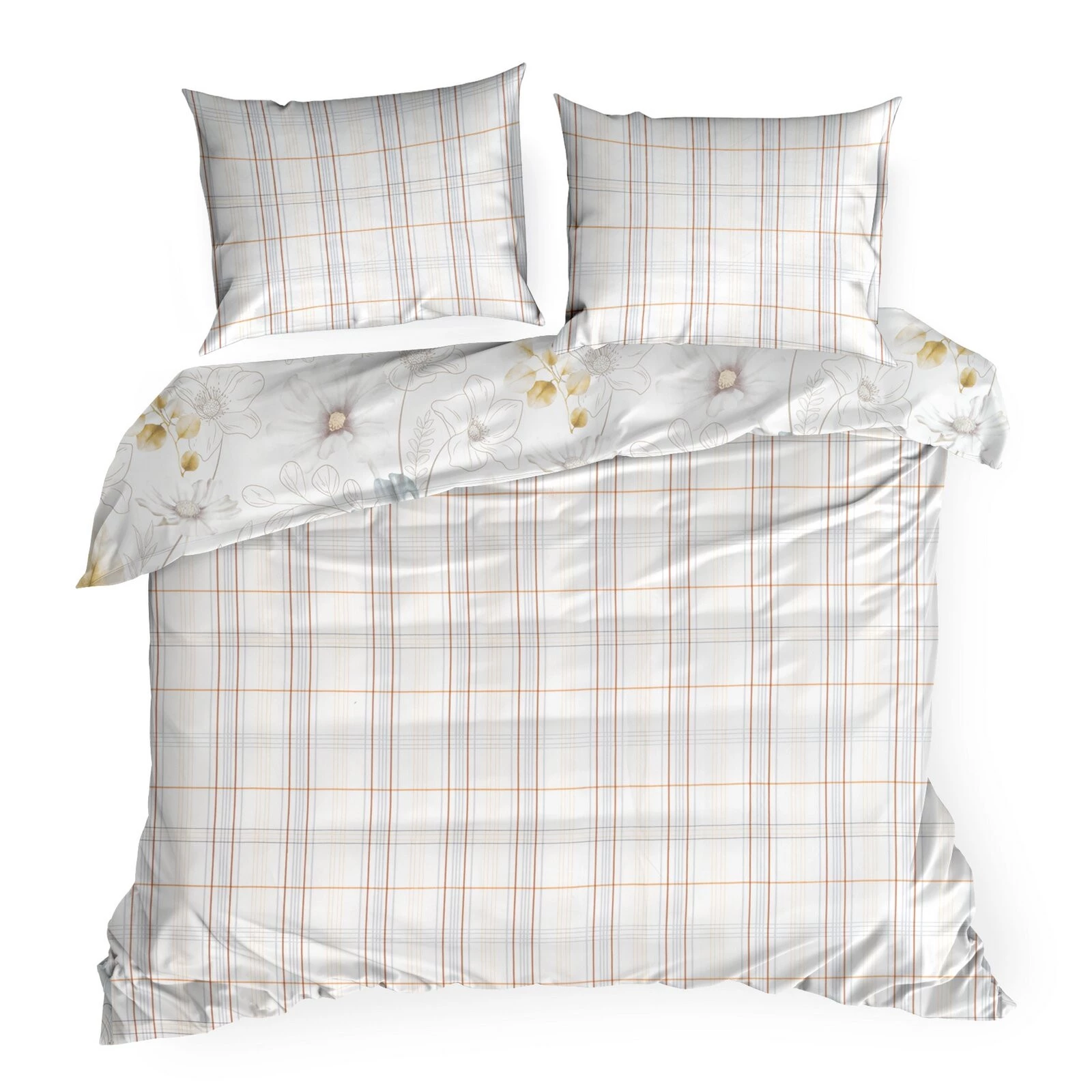Komplet pościeli dwustronnej z nadrukiem, splot satynowy szerokość: 160 cm, długość: 200 cm, kolor: biały, Gramatura: 125 GSM, Skład: 55% bawełna, 45% poliester