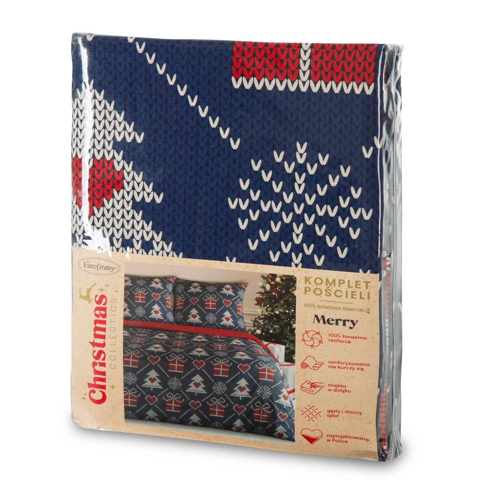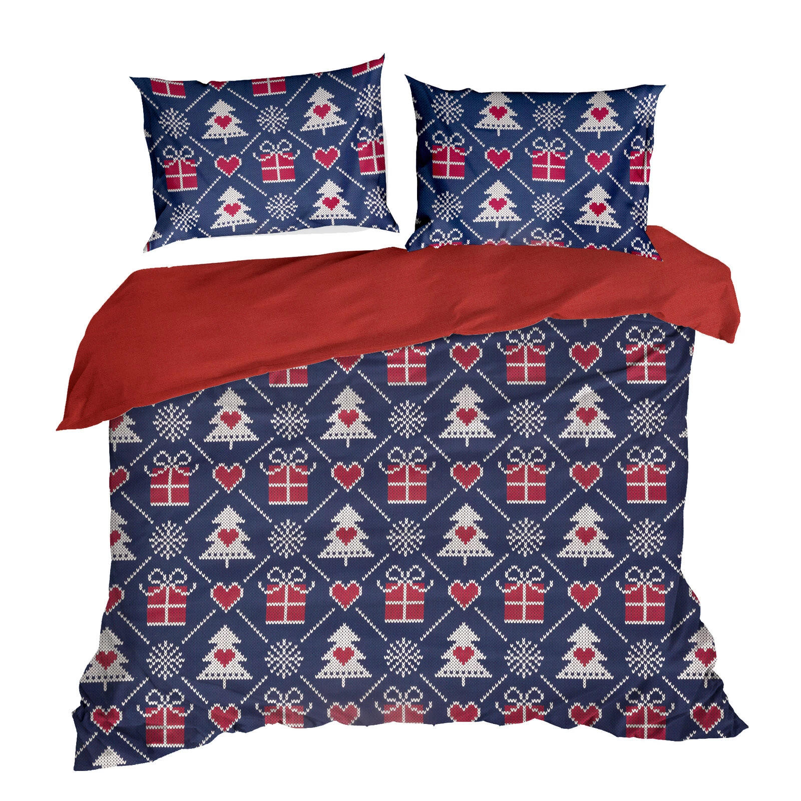 Komplet pościeli z bawełny renforce z nadrukiem świątecznym szerokość: 220 cm, długość: 200 cm, kolor: granatowy, Gramatura: 105 GSM, Skład: 100% bawełna