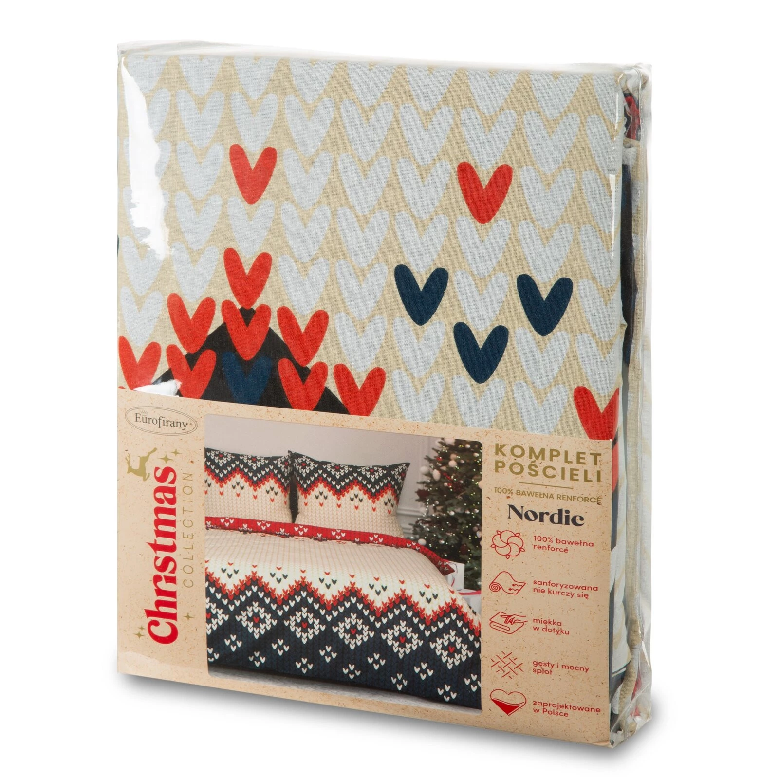 Komplet pościeli z bawełny renforce z nadrukiem świątecznym szerokość: 160 cm, długość: 200 cm, kolor: beżowy, Gramatura: 105 GSM, Skład: 100% bawełna