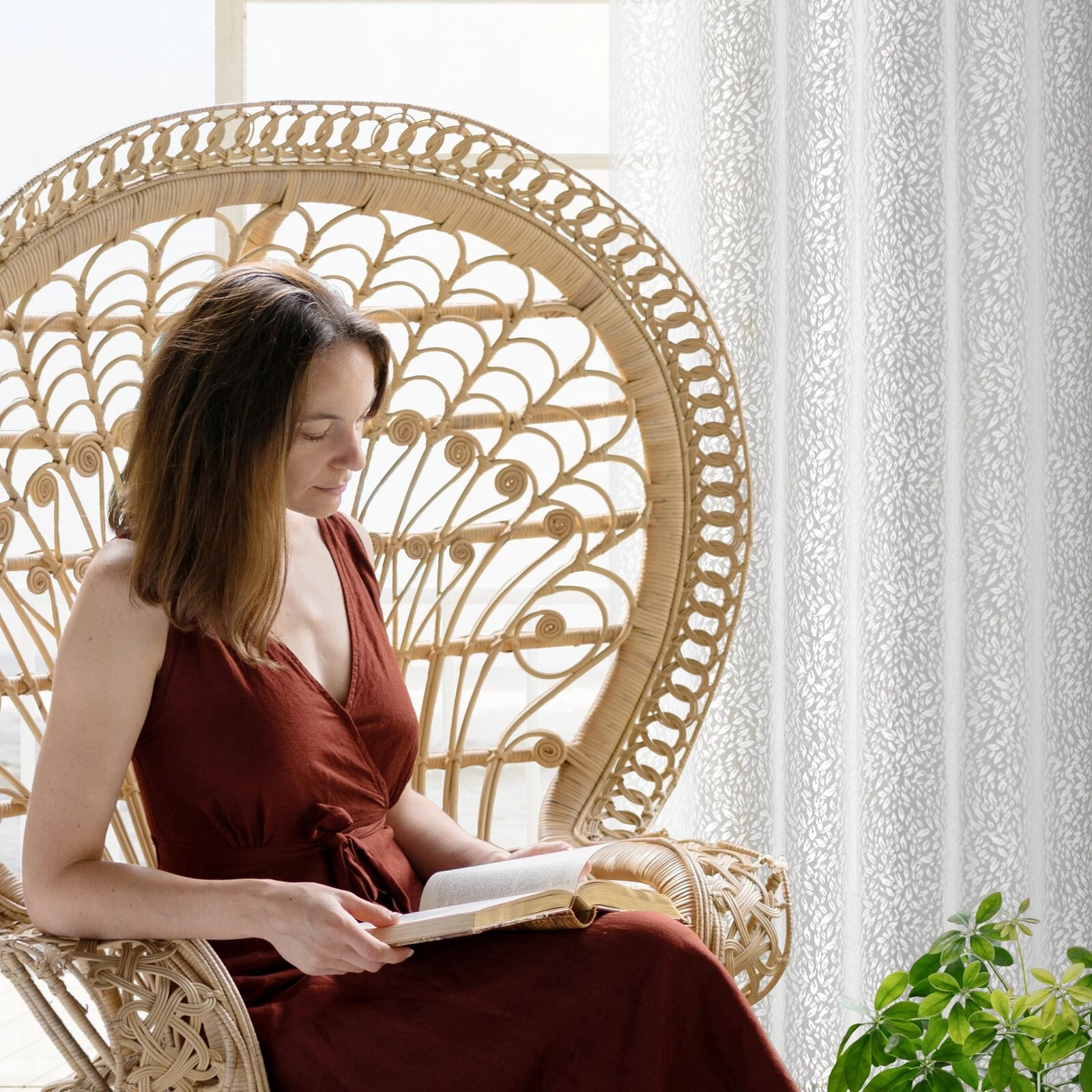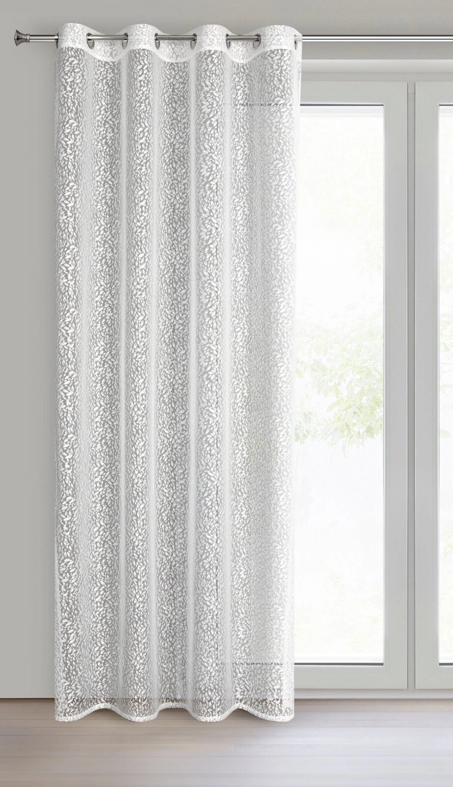 - Zasłona gotowa żakardowa z motywem listków szerokość: 140 cm, długość: 250 cm, kolor: biały, Skład: 100% poliester