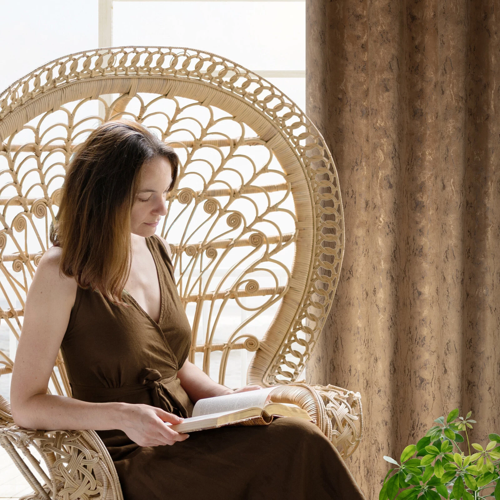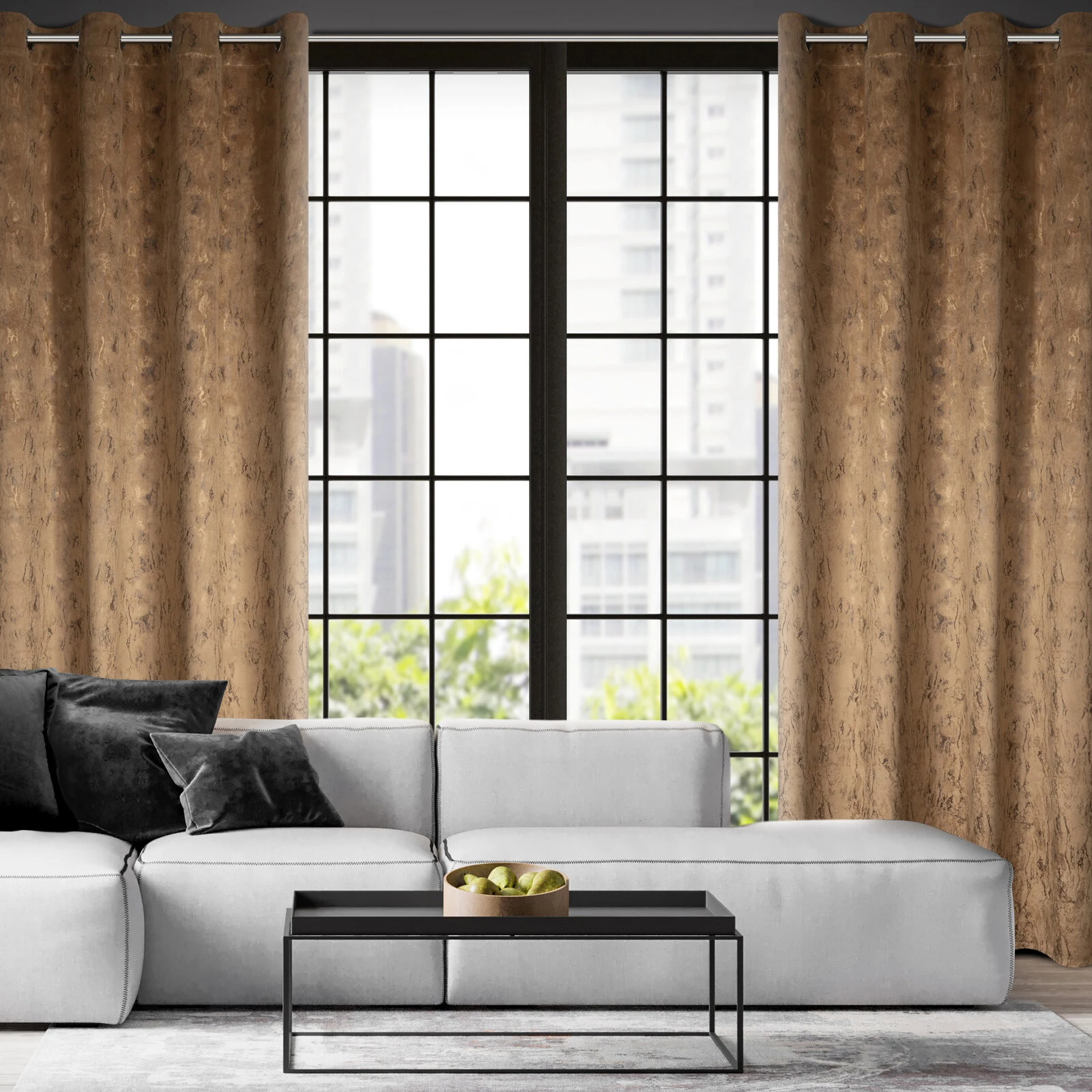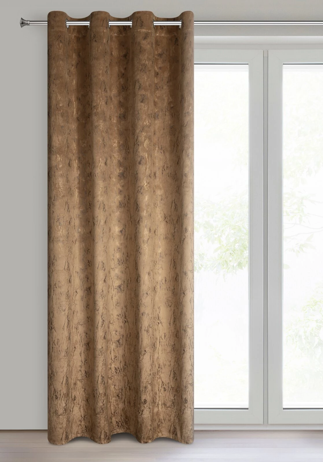 Zasłona welwetowa ze złotym nadrukiem szerokość: 140 cm, długość: 250 cm, kolor: miodowy, Gramatura: 200 GSM, Skład: 100% poliester