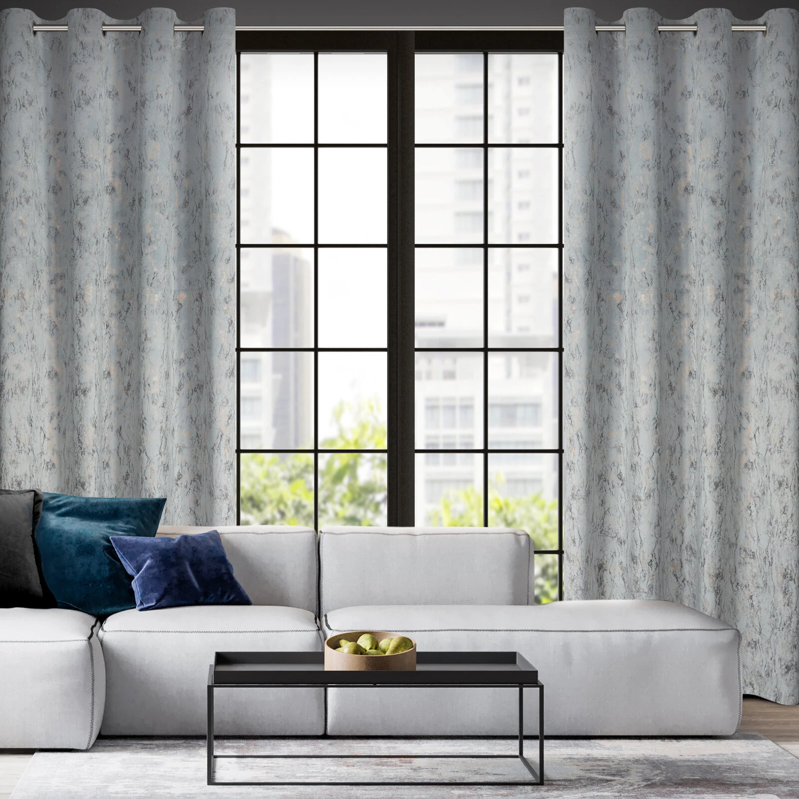 Zasłona welwetowa ze złotym nadrukiem szerokość: 140 cm, długość: 250 cm, kolor: srebrny, Gramatura: 200 GSM, Skład: 100% poliester