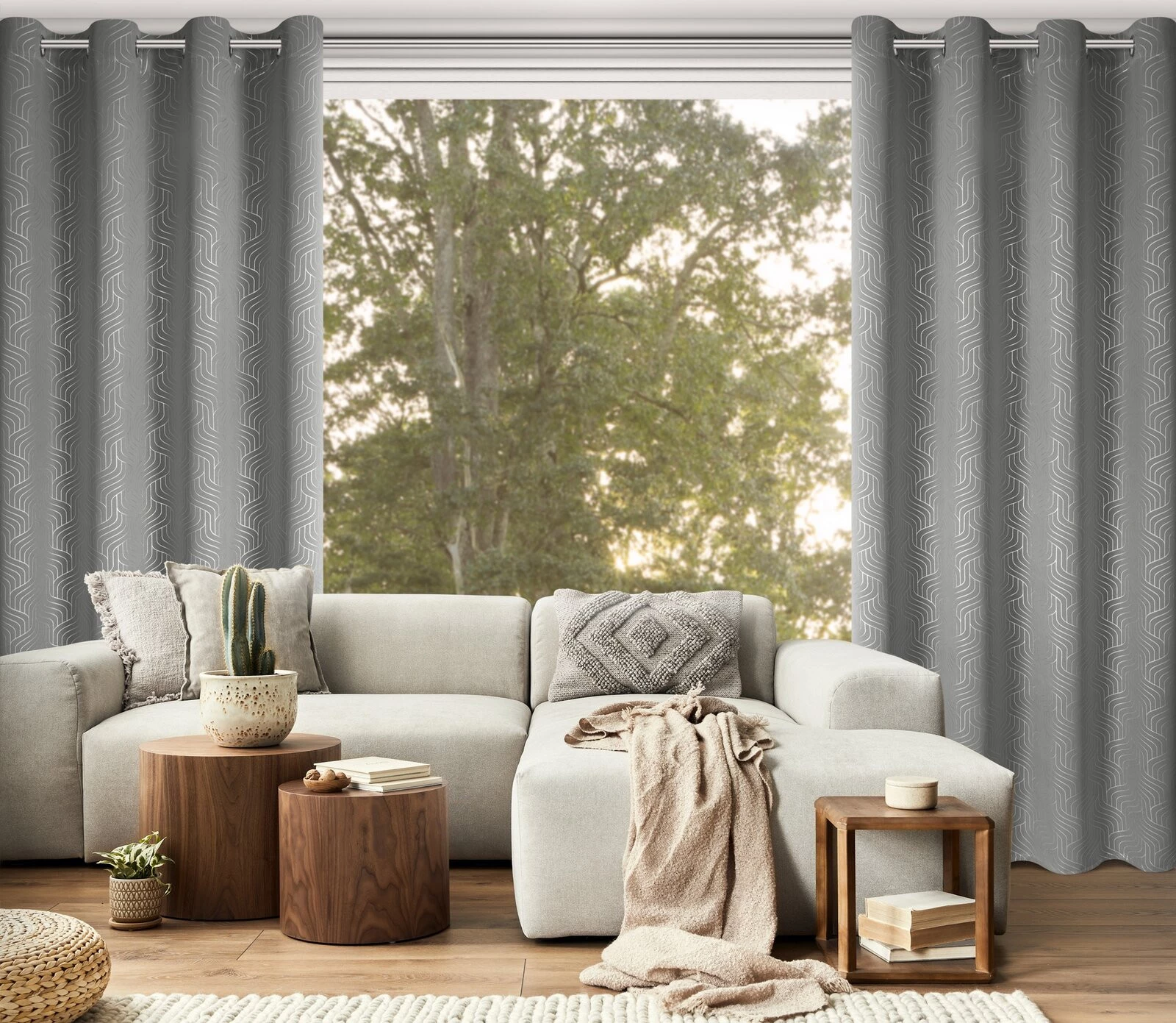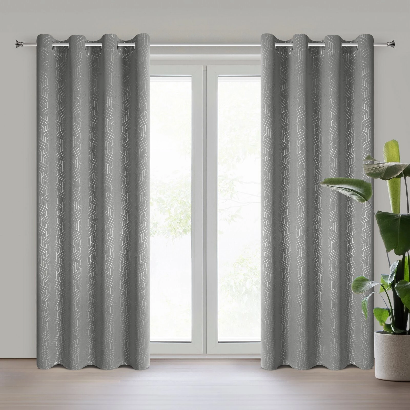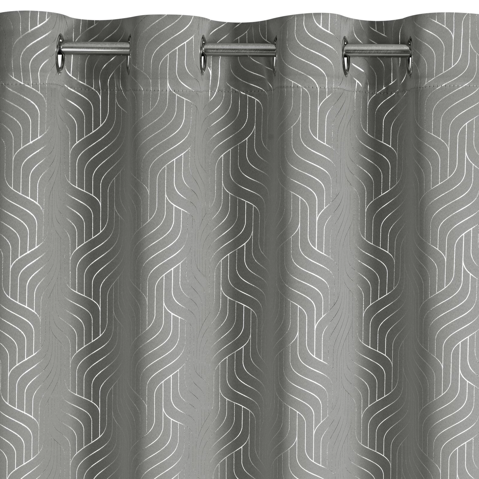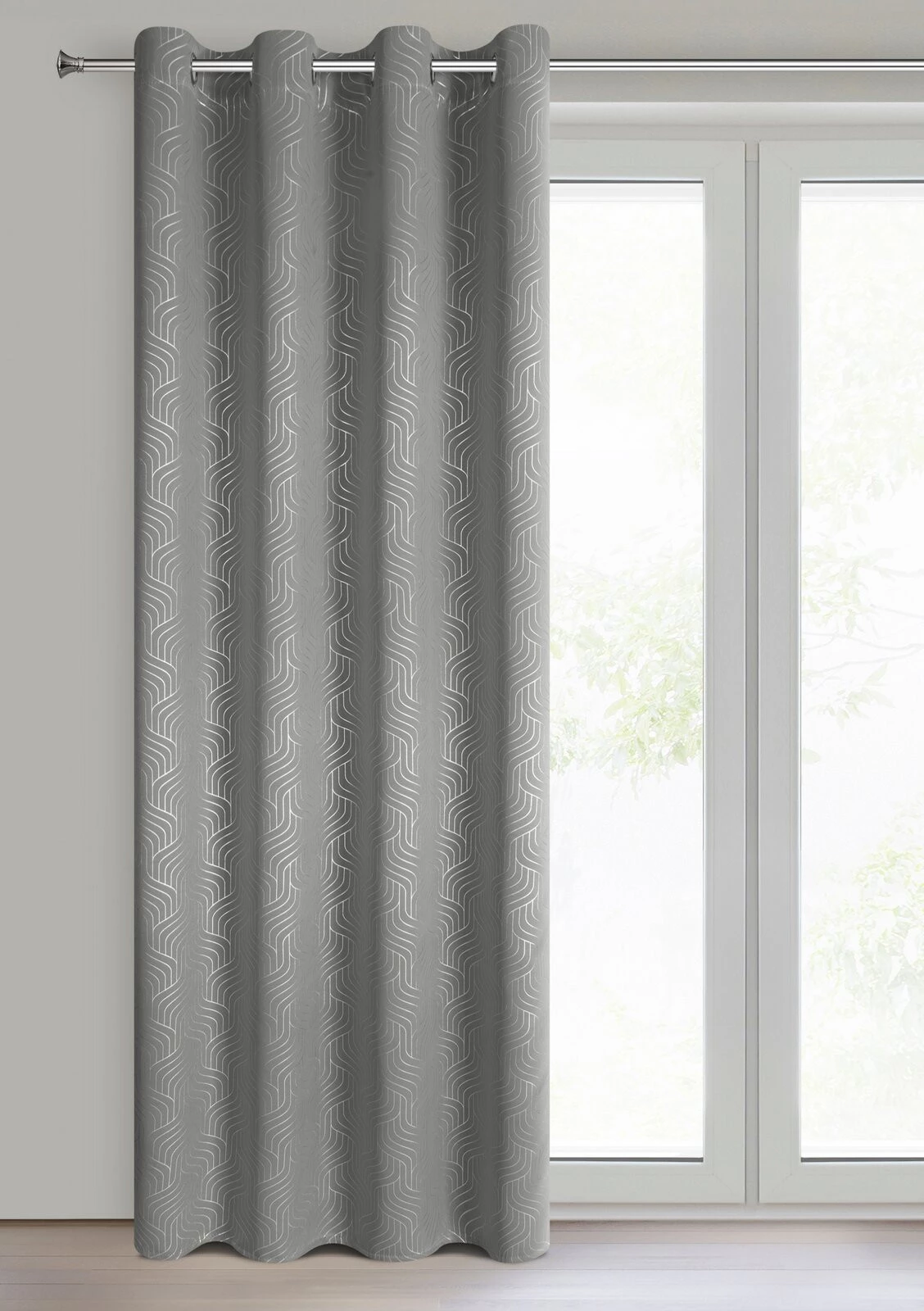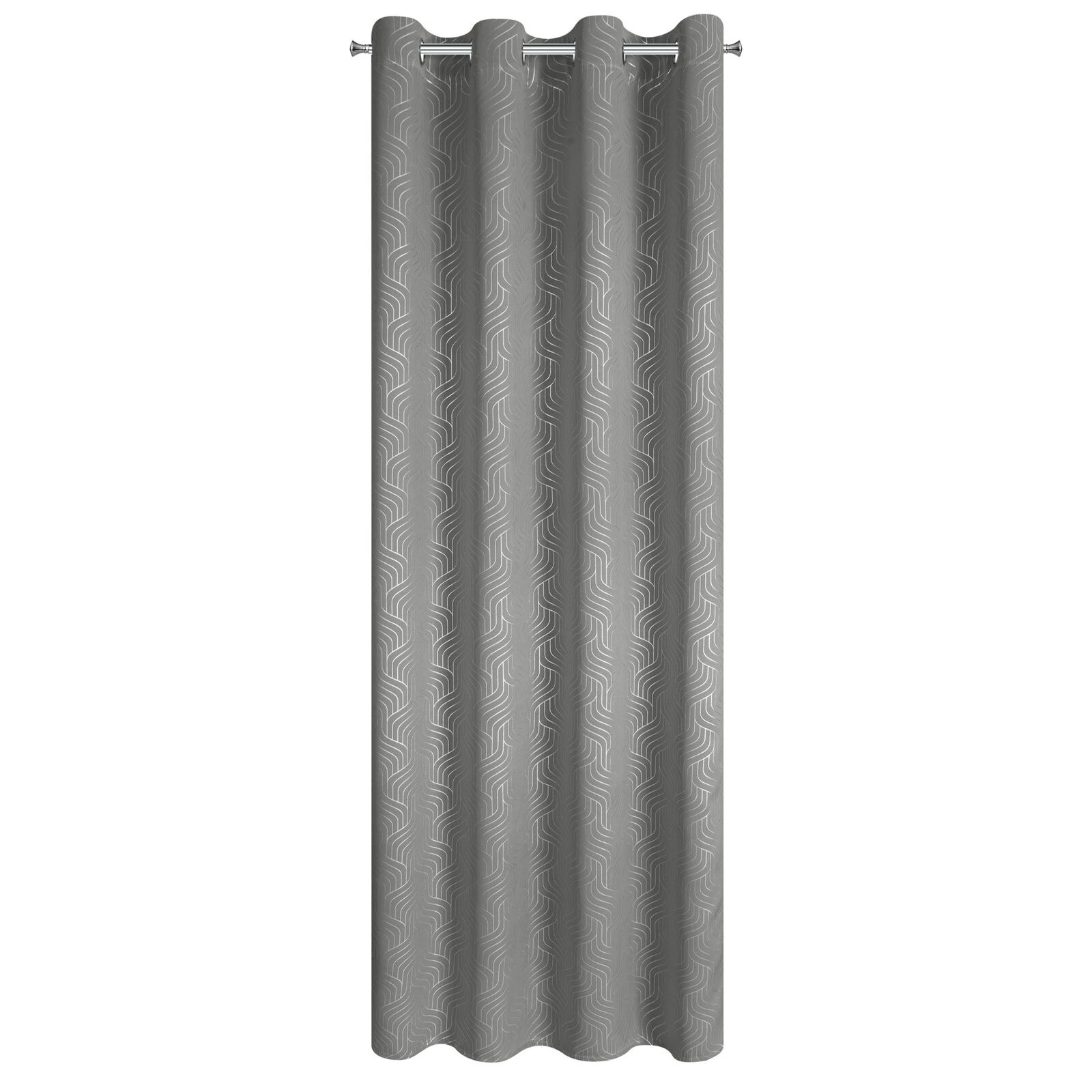 Zasłona gotowa zaciemniająca w błyszczący geometryczny wzór szerokość: 140 cm, długość: 250 cm, kolor: srebrny, Gramatura: 190 GSM, Skład: 100% poliester
