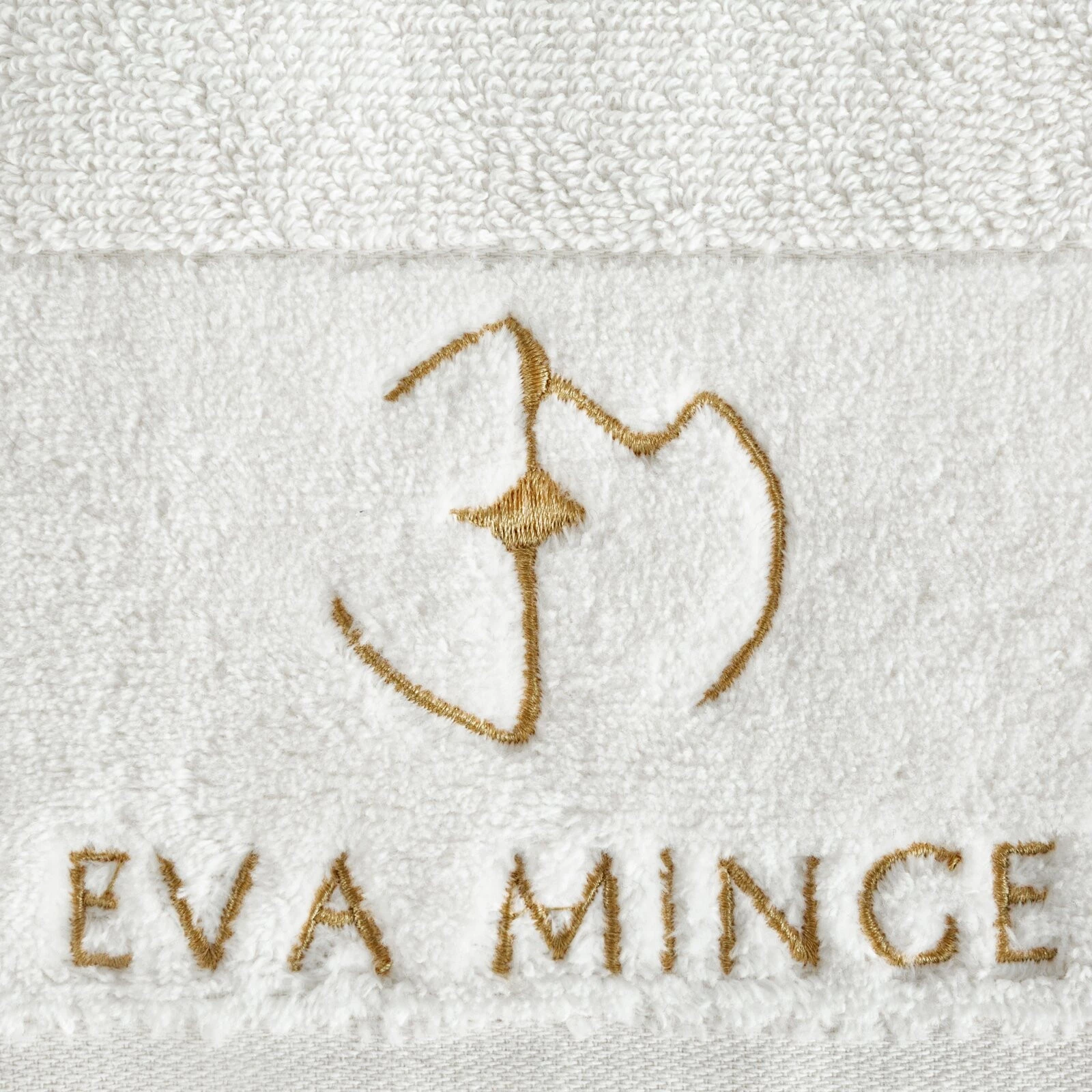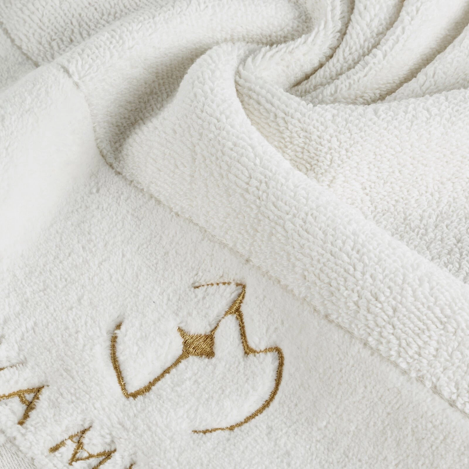 Ręcznik z welurową bordiurą zdobiony haftem szerokość: 50 cm, długość: 90 cm, kolor: kremowy, Gramatura: 550 GSM, Skład: 100% bawełna