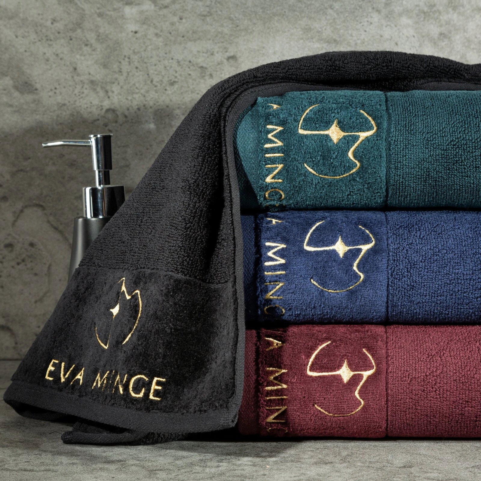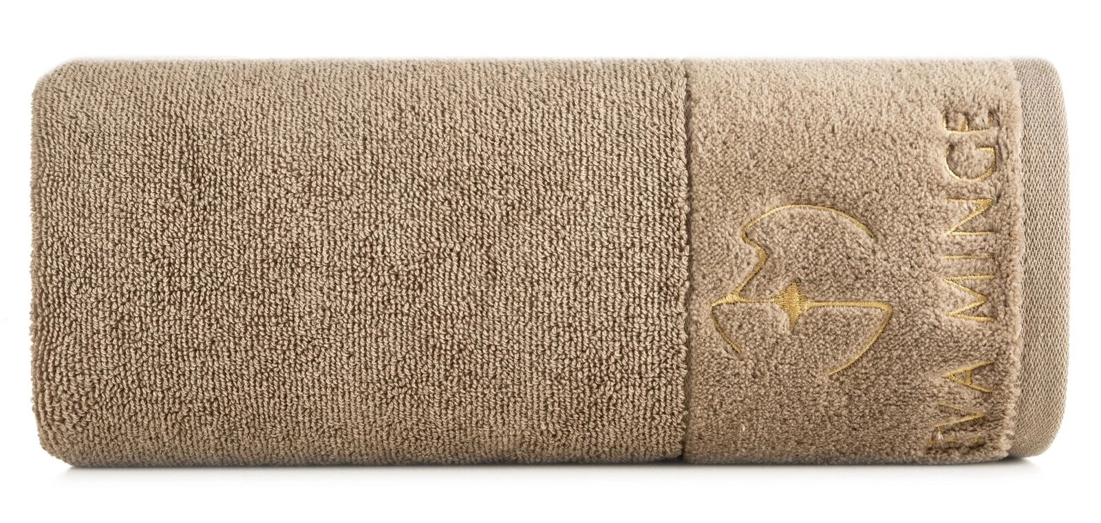 Ręcznik z welurową bordiurą zdobiony haftem szerokość: 70 cm, długość: 140 cm, kolor: beżowy, Gramatura: 550 GSM, Skład: 100% bawełna