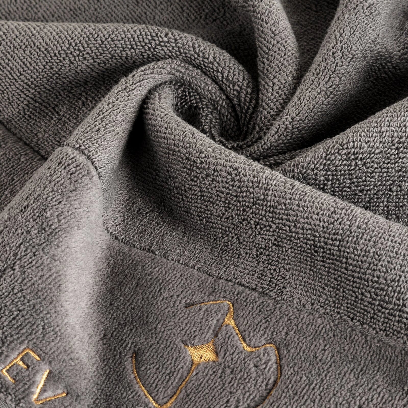 Ręcznik z welurową bordiurą zdobiony haftem szerokość: 70 cm, długość: 140 cm, kolor: srebrny, Gramatura: 550 GSM, Skład: 100% bawełna