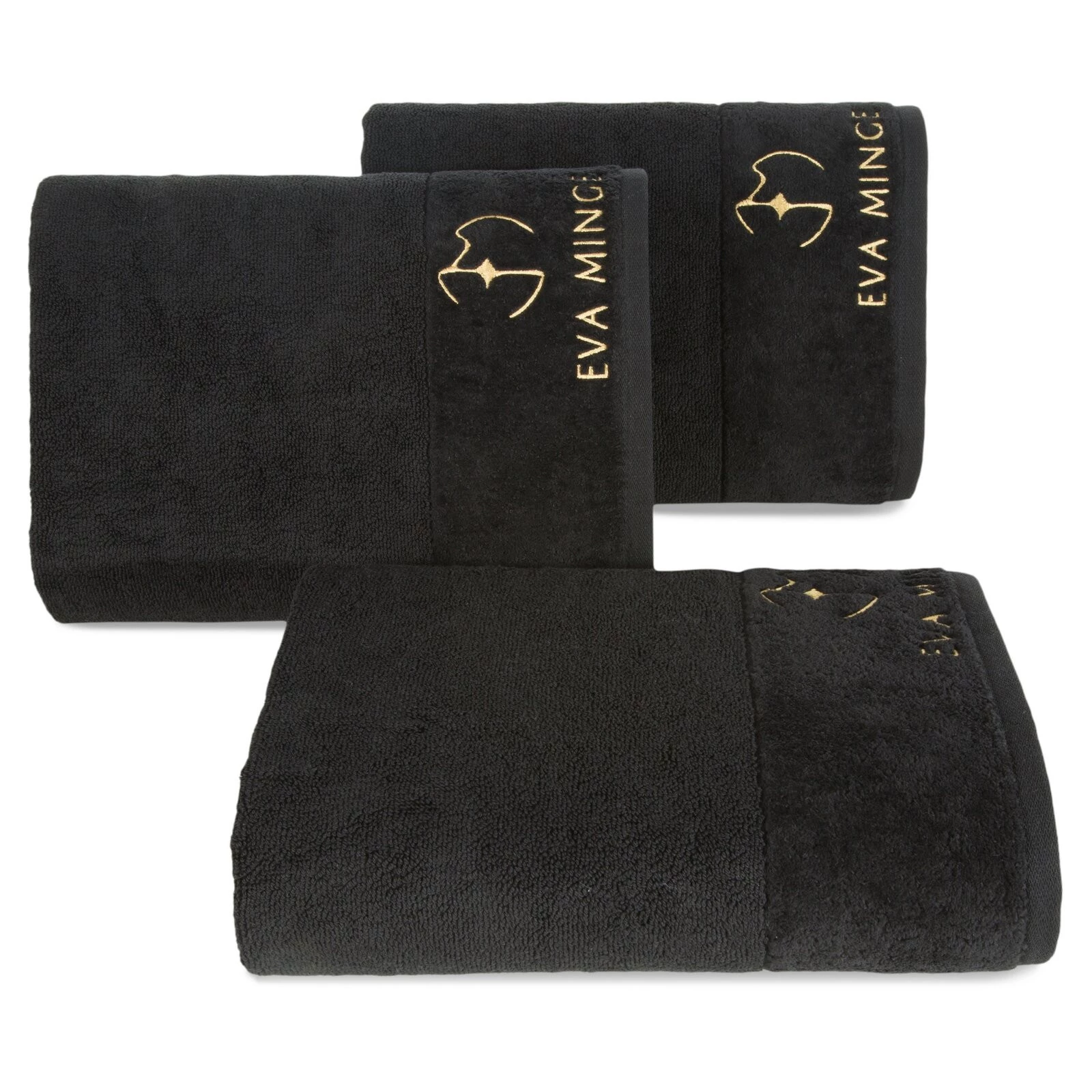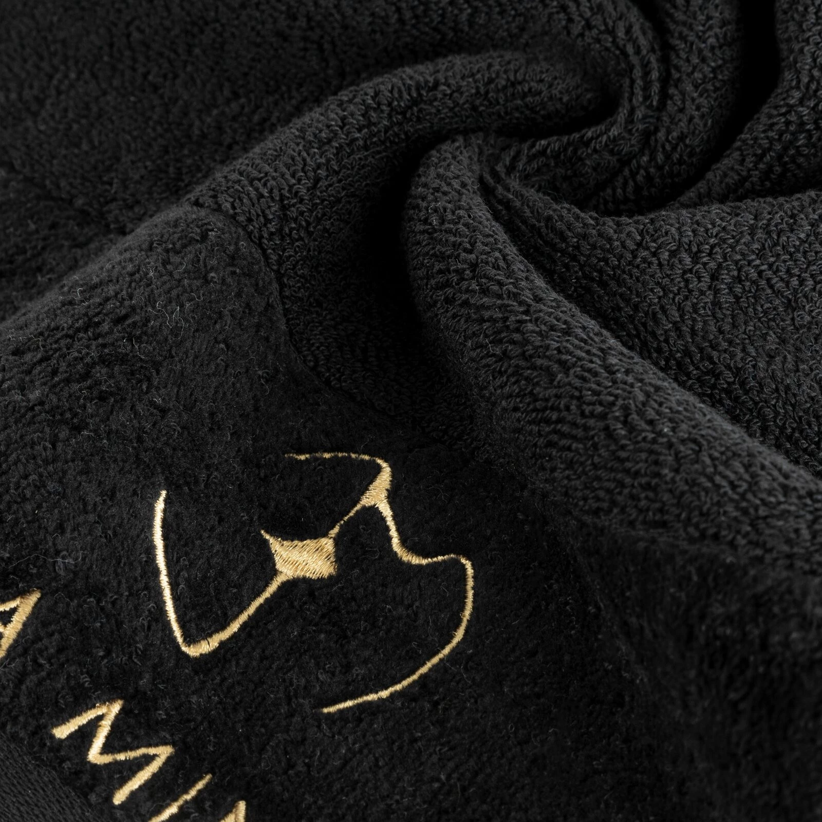 Ręcznik z welurową bordiurą zdobiony haftem szerokość: 30 cm, długość: 50 cm, kolor: czarny, Gramatura: 550 GSM, Skład: 100% bawełna