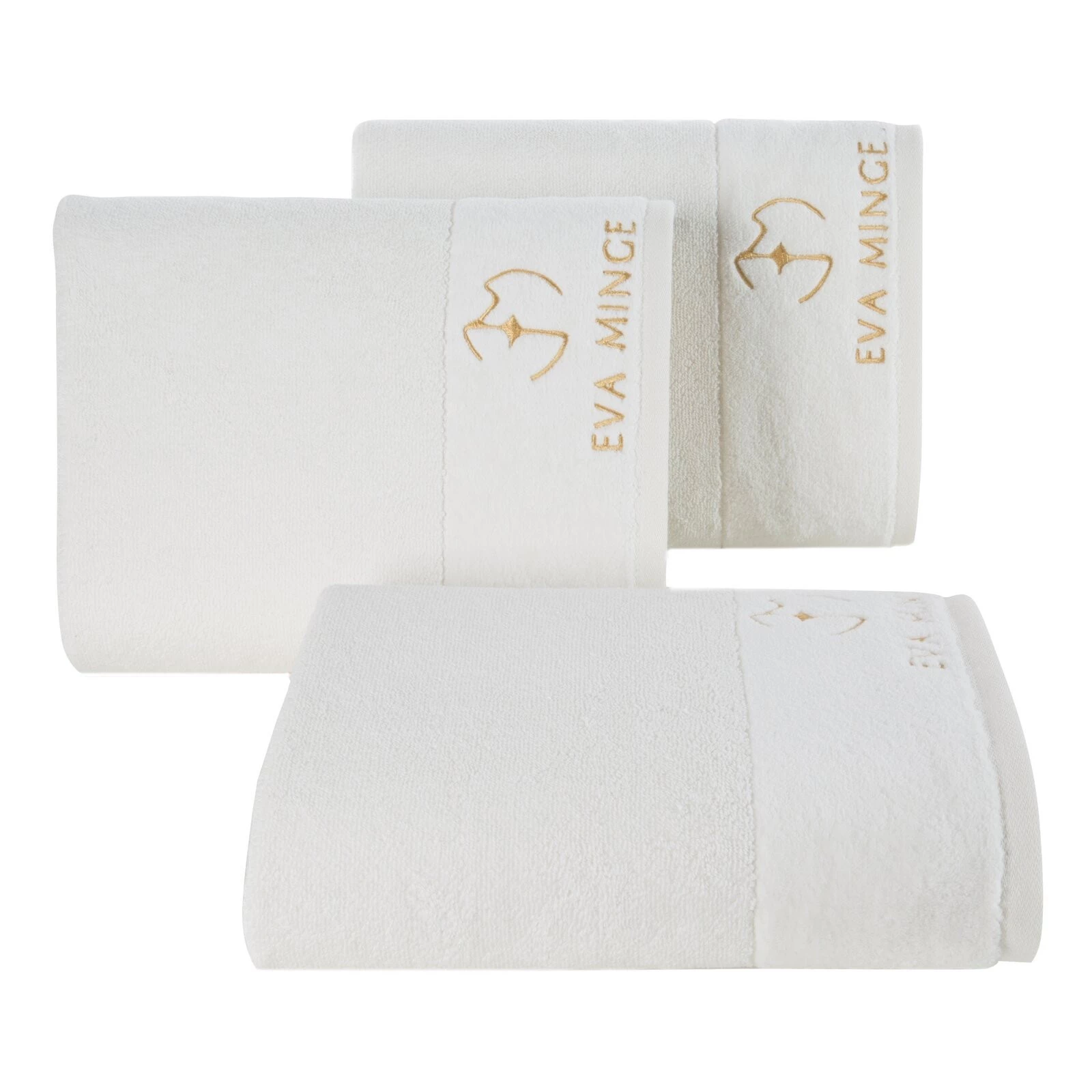 Ręcznik z welurową bordiurą zdobiony haftem szerokość: 30 cm, długość: 50 cm, kolor: kremowy, Gramatura: 550 GSM, Skład: 100% bawełna