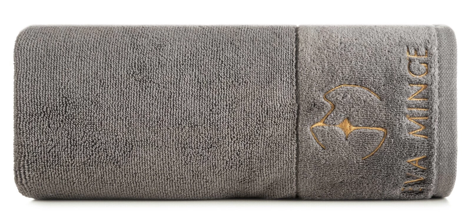 Ręcznik z welurową bordiurą zdobiony haftem szerokość: 30 cm, długość: 50 cm, kolor: srebrny, Gramatura: 550 GSM, Skład: 100% bawełna