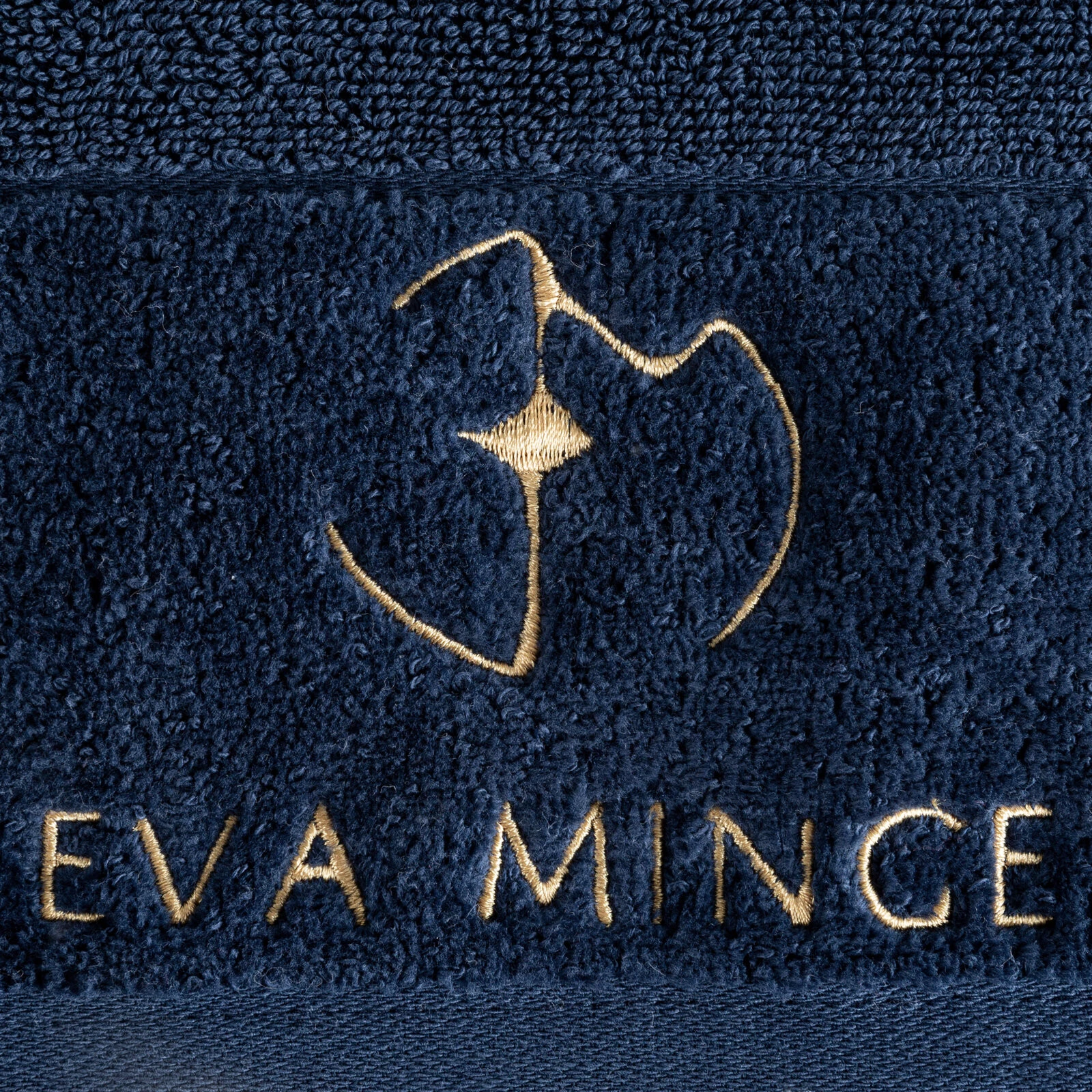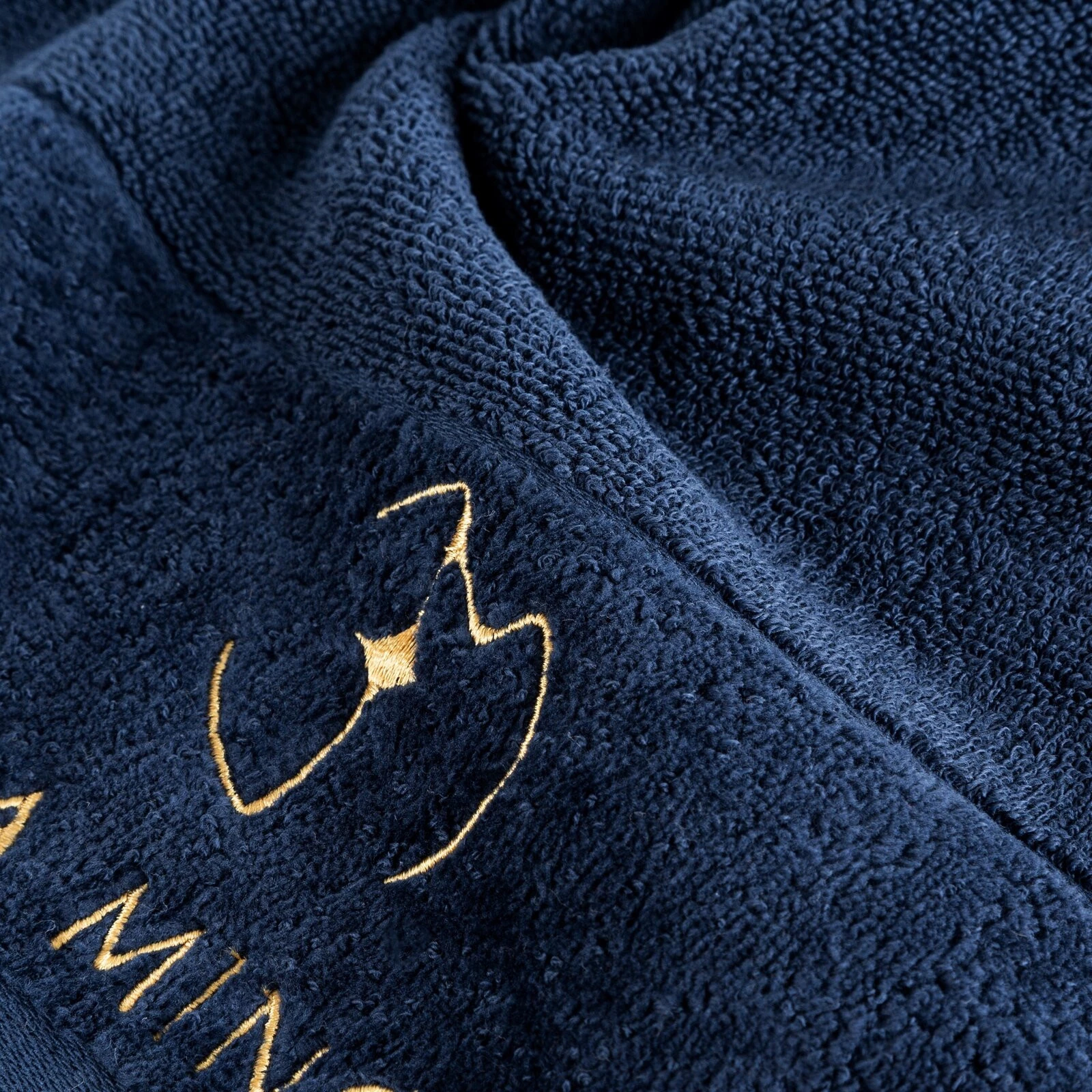 Ręcznik z welurową bordiurą zdobiony haftem szerokość: 70 cm, długość: 140 cm, kolor: granatowy, Gramatura: 550 GSM, Skład: 100% bawełna