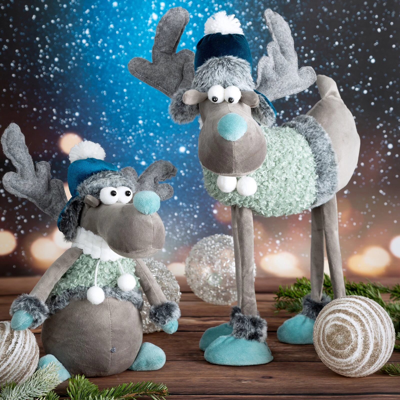 świąteczny renifer dekoracyjny szerokość: 35 cm, długość: 16 cm, kolor: niebieski, Skład: 100% poliester