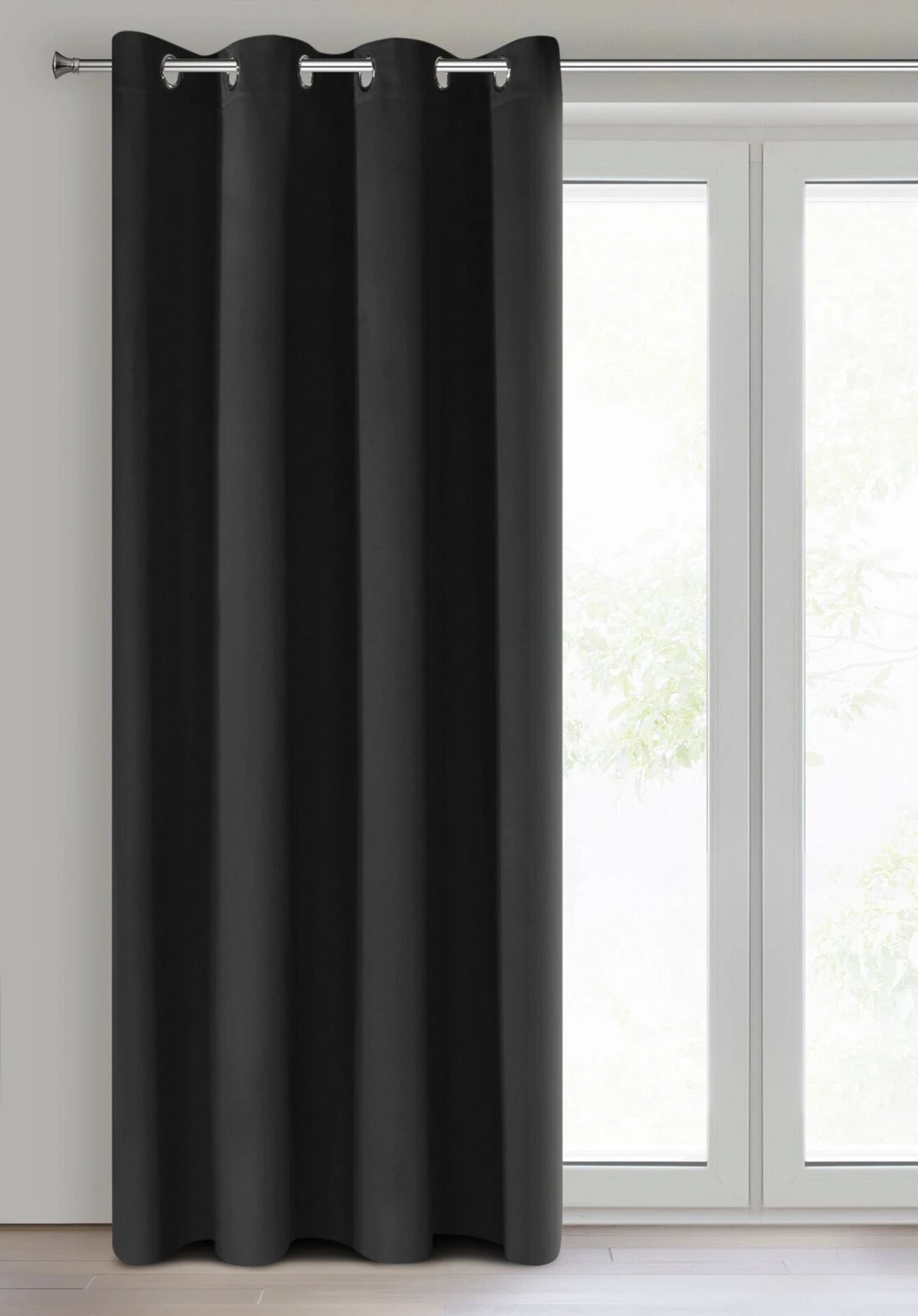 - Zasłona gotowa zaciemniająca szerokość: 140 cm, długość: 250 cm, kolor: czarny, Gramatura: 190 GSM, Skład: 100% poliester