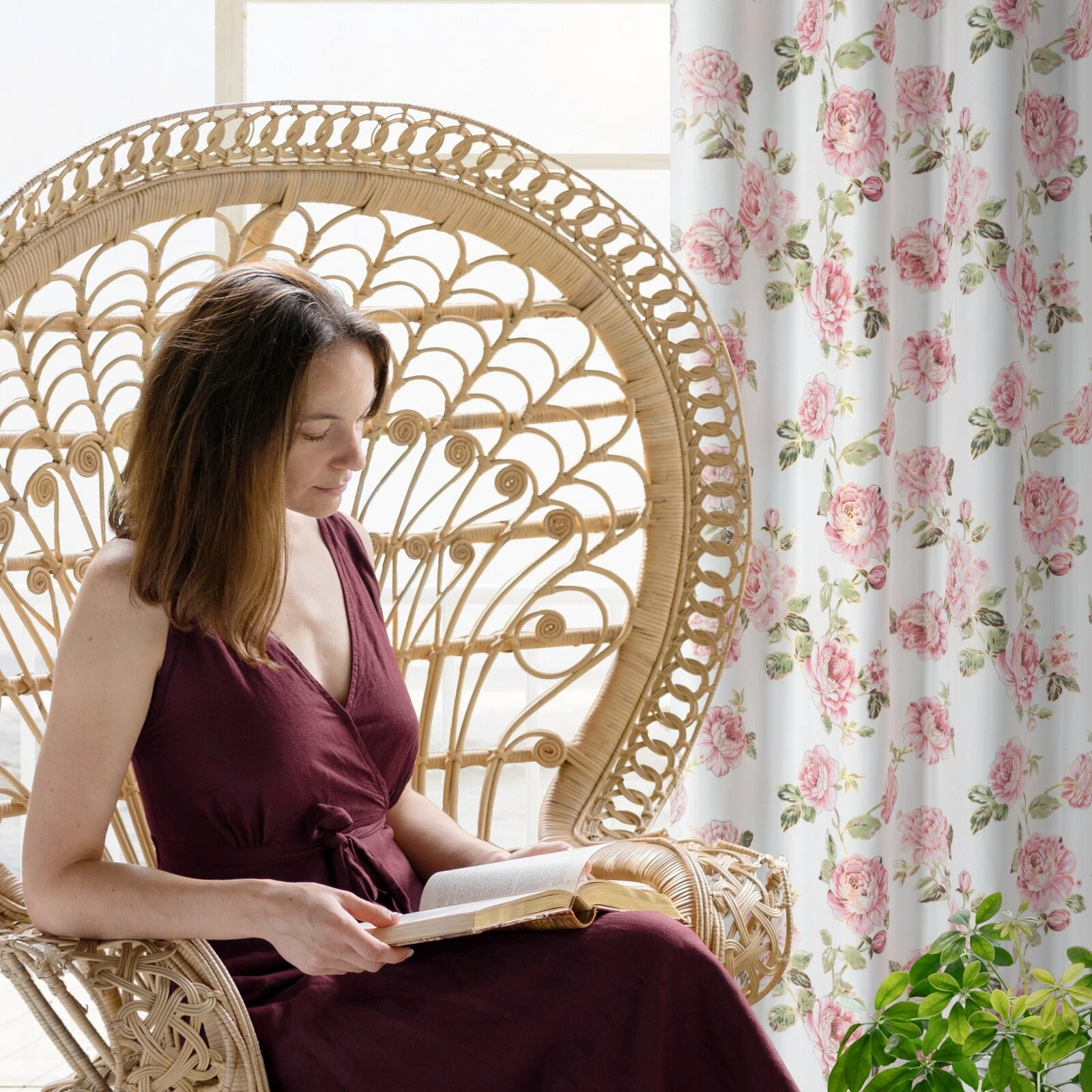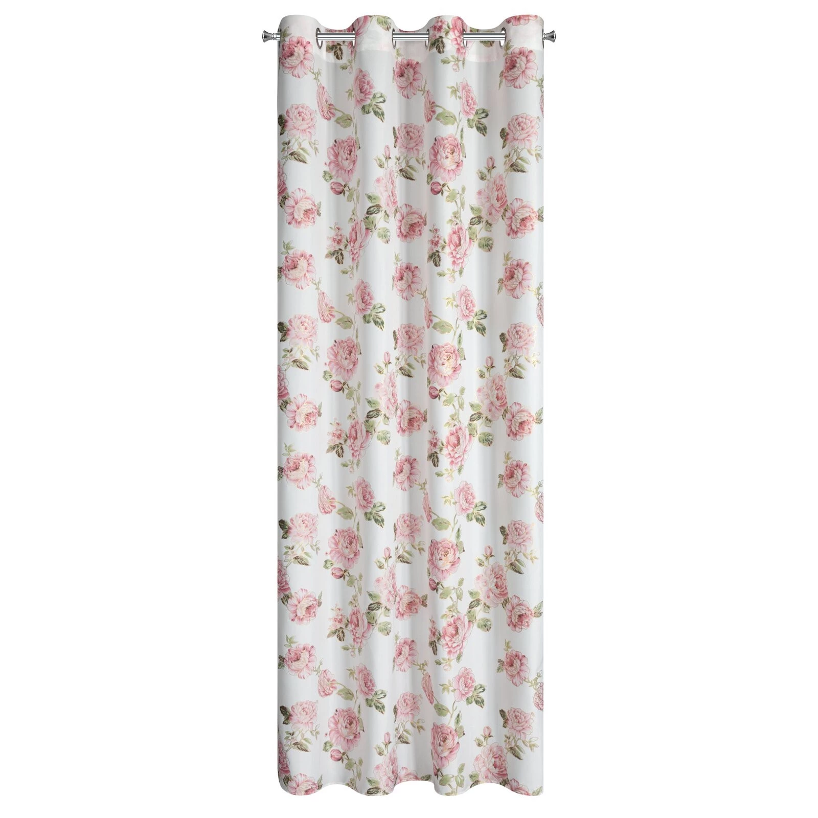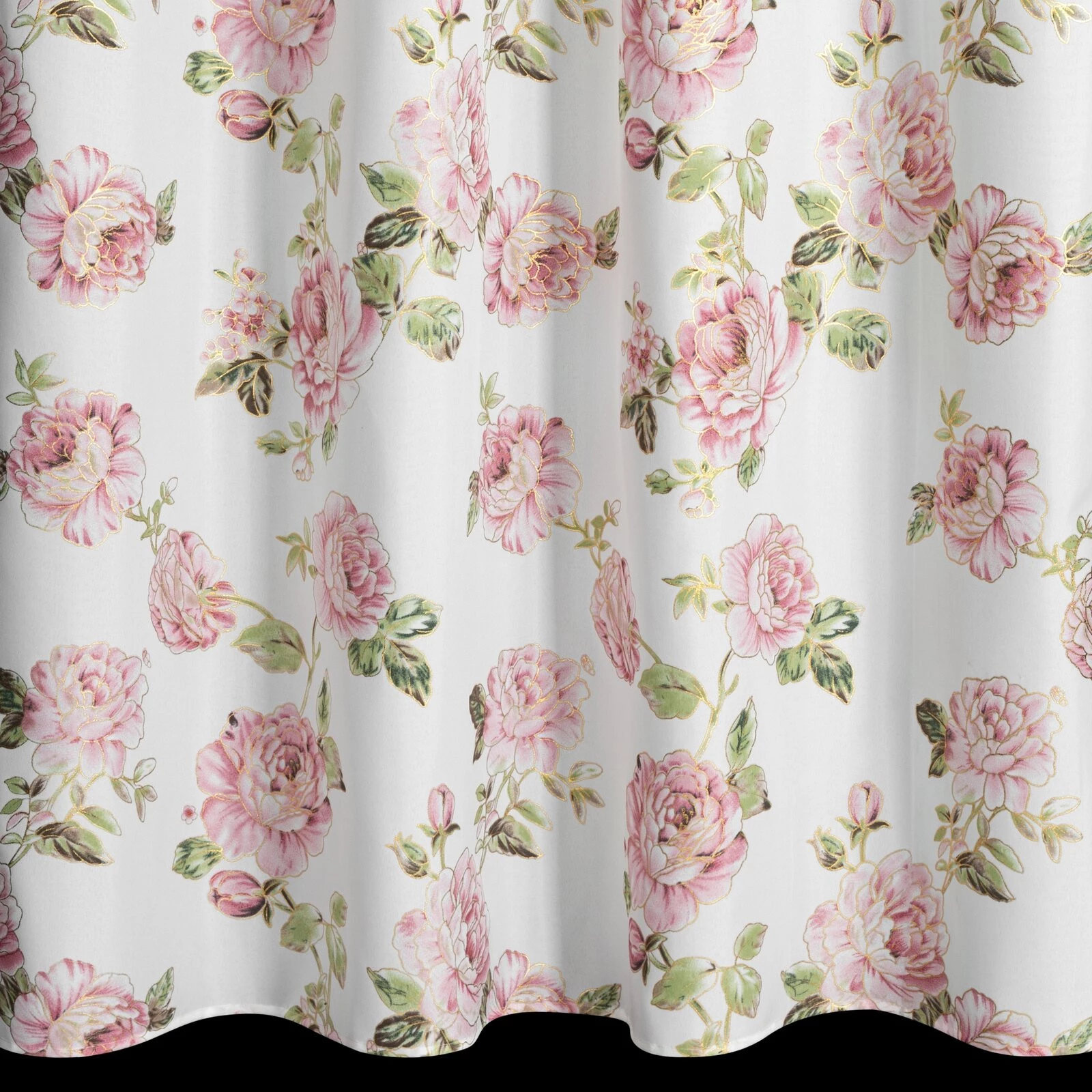 - Zasłona z motywem kwiatów z błyszczącym nadrukiem szerokość: 140 cm, długość: 250 cm, kolor: biały, Gramatura: 135 GSM, Skład: 100% poliester