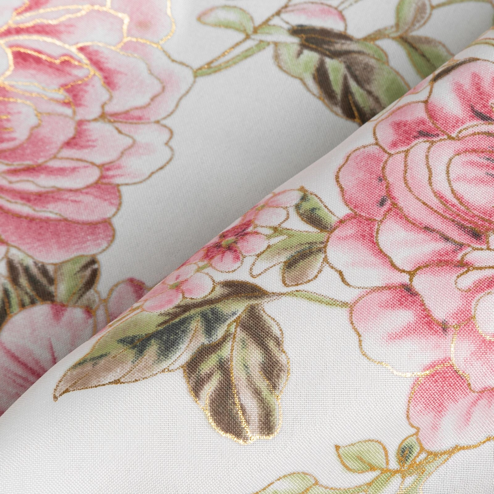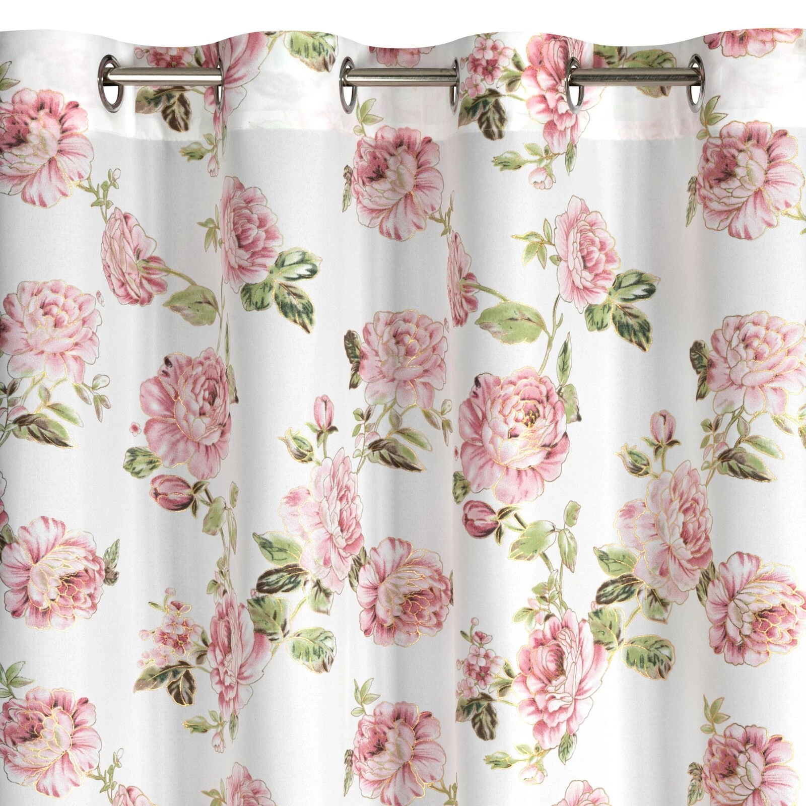 Zasłona z motywem kwiatów z błyszczącym nadrukiem szerokość: 140 cm, długość: 250 cm, kolor: biały, Gramatura: 135 GSM, Skład: 100% poliester