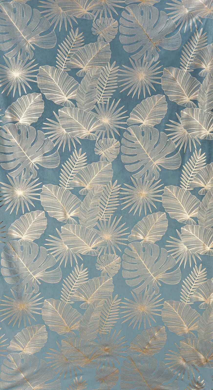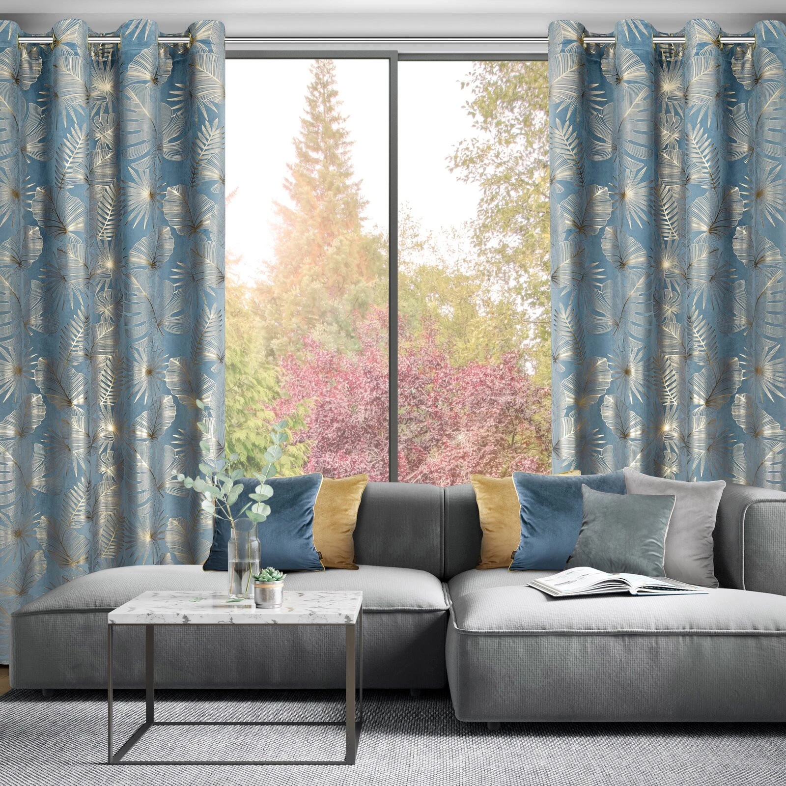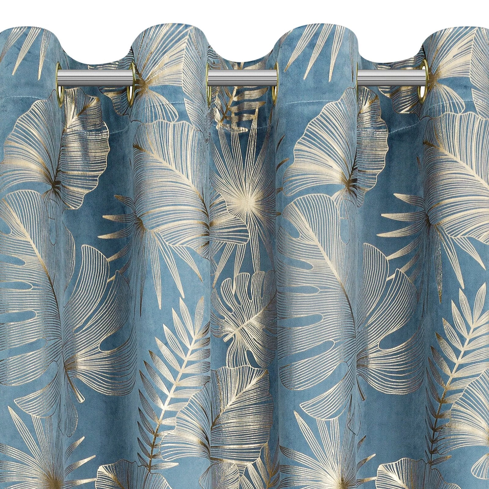 Zasłona gotowa welwetowa z nadrukiem błyszczącym szerokość: 135 cm, długość: 250 cm, kolor: niebieski, Gramatura: 200 GSM, Skład: 100% poliester
