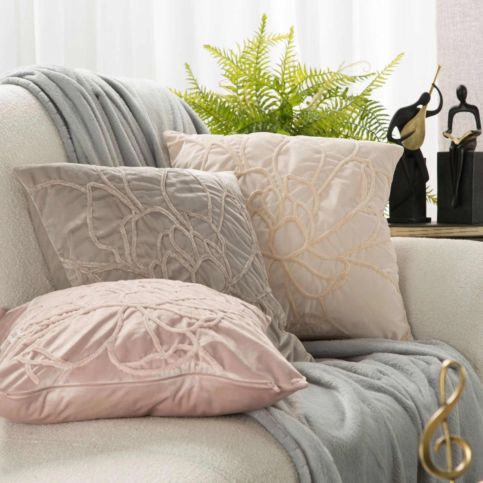 - Poszewka dekoracyjna z ozdobnym haftem szerokość: 45 cm, długość: 45 cm, kolor: srebrny, Gramatura: 200 GSM, Skład: 100% poliester