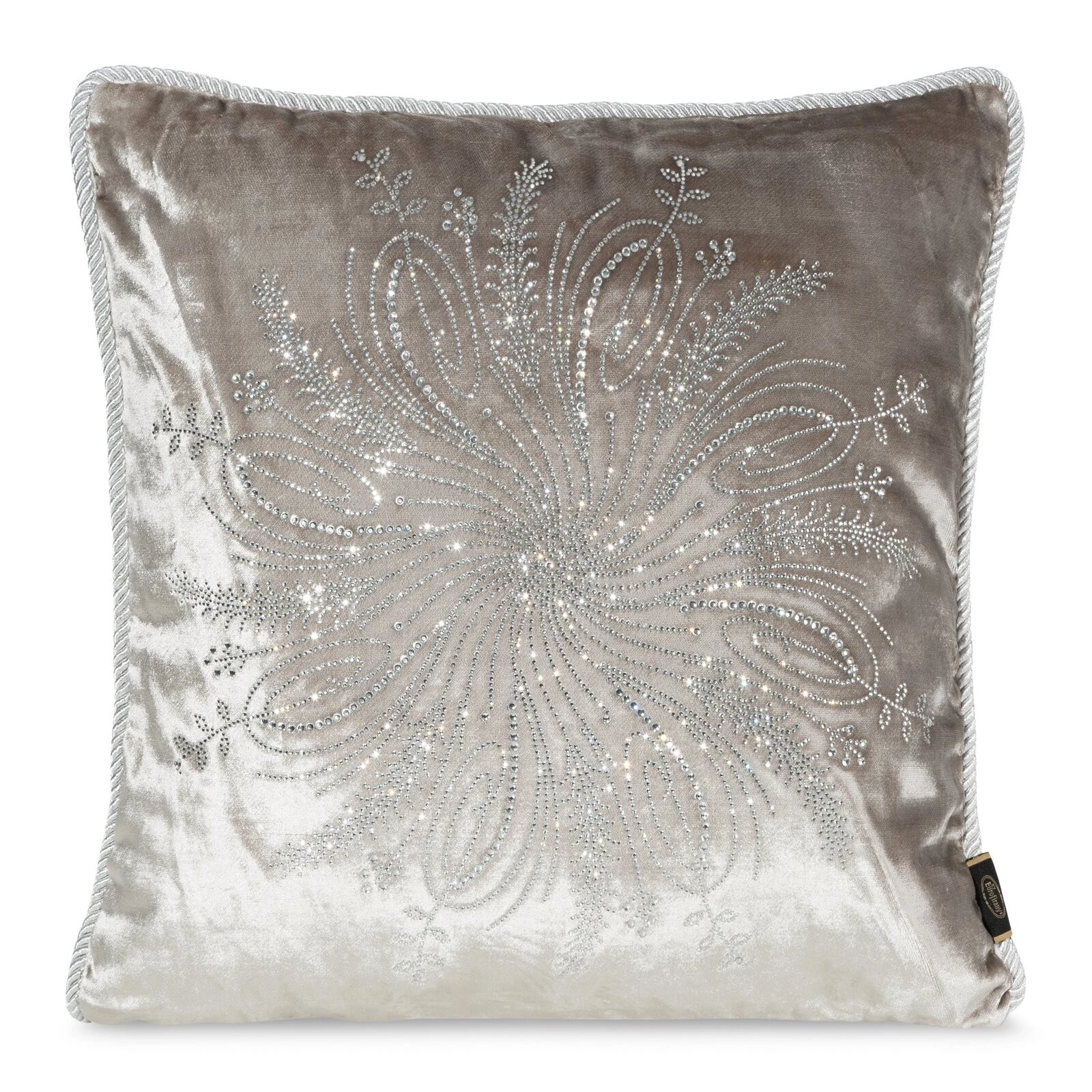 - Poduszka velvetowa z kryształkami szerokość: 45 cm, długość: 45 cm, kolor: beżowy, Gramatura: 340 GSM, Skład: 100% poliester