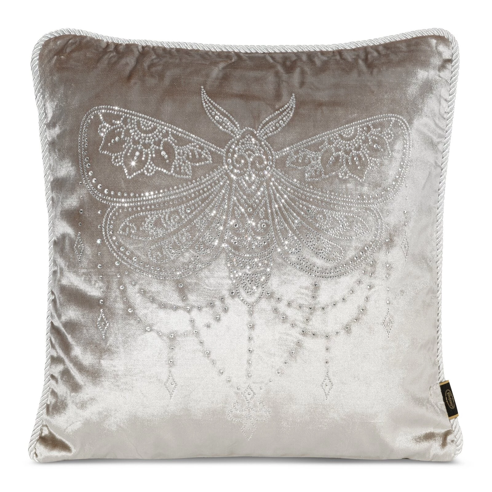 - Poduszka velvetowa z kryształkami szerokość: 45 cm, długość: 45 cm, kolor: beżowy, Gramatura: 340 GSM, Skład: 100% poliester